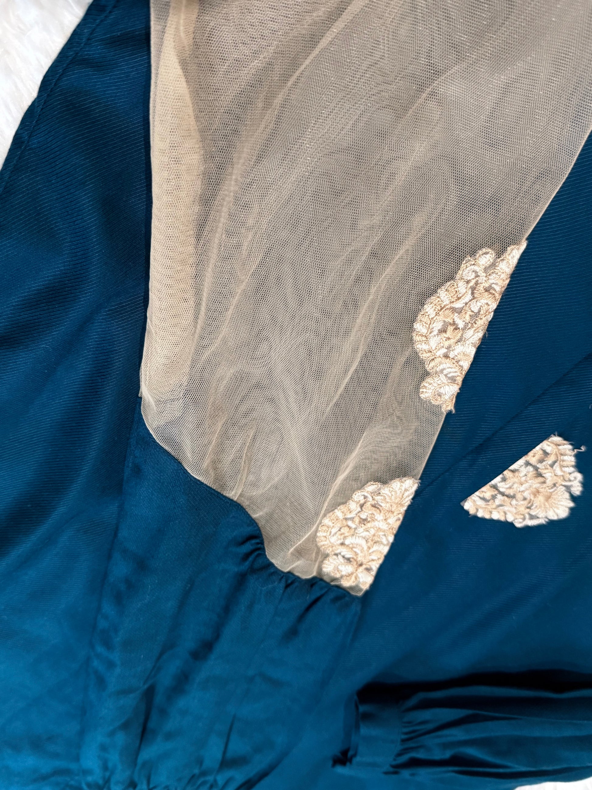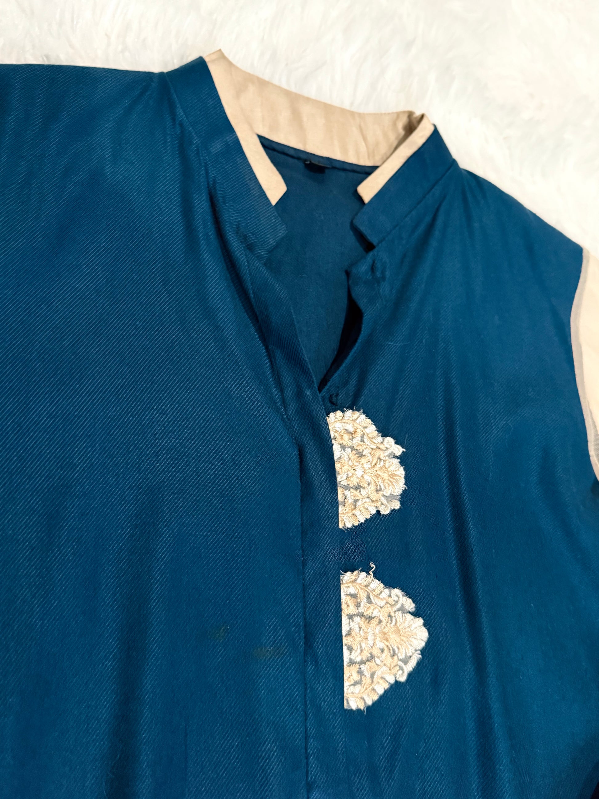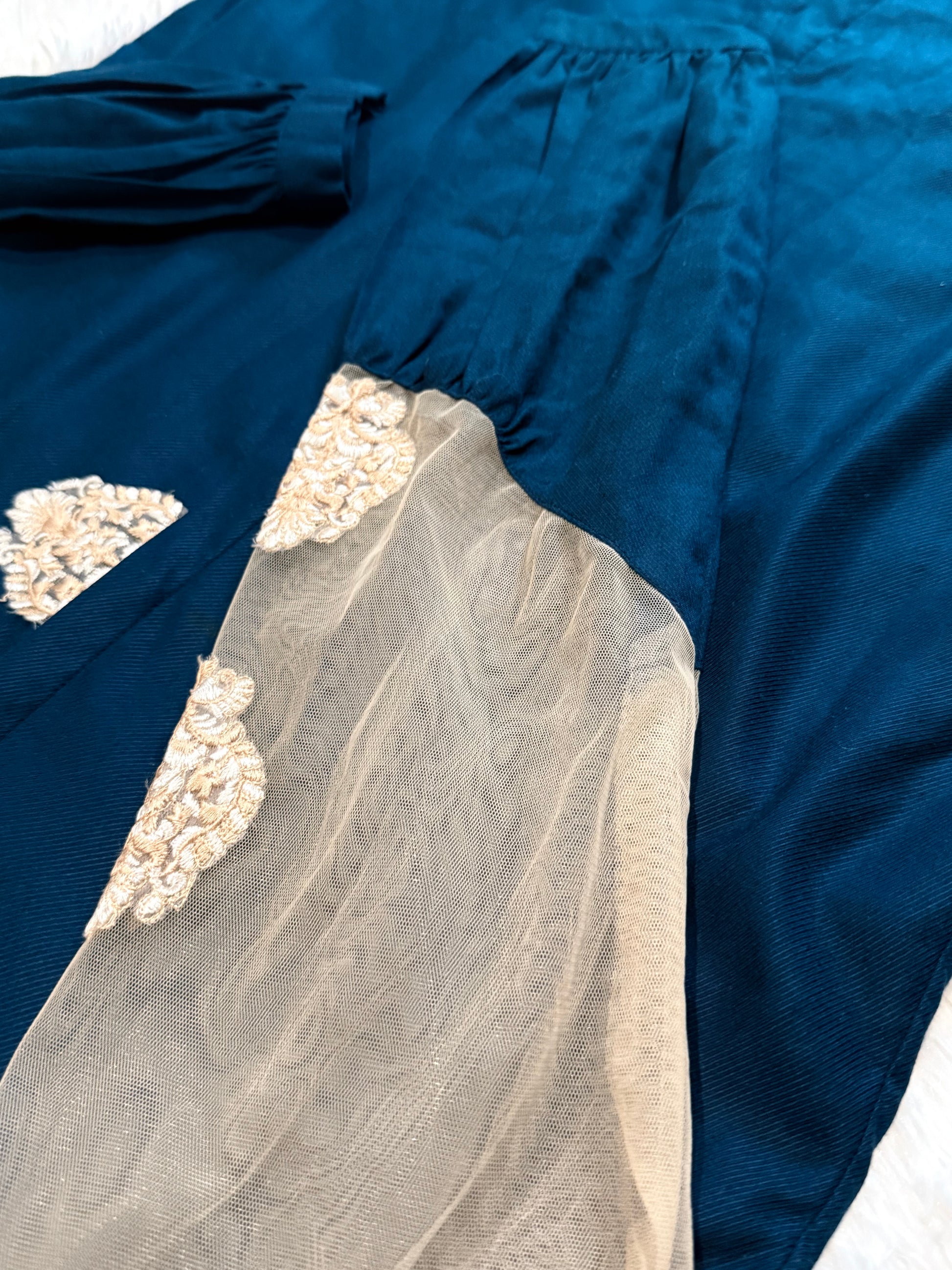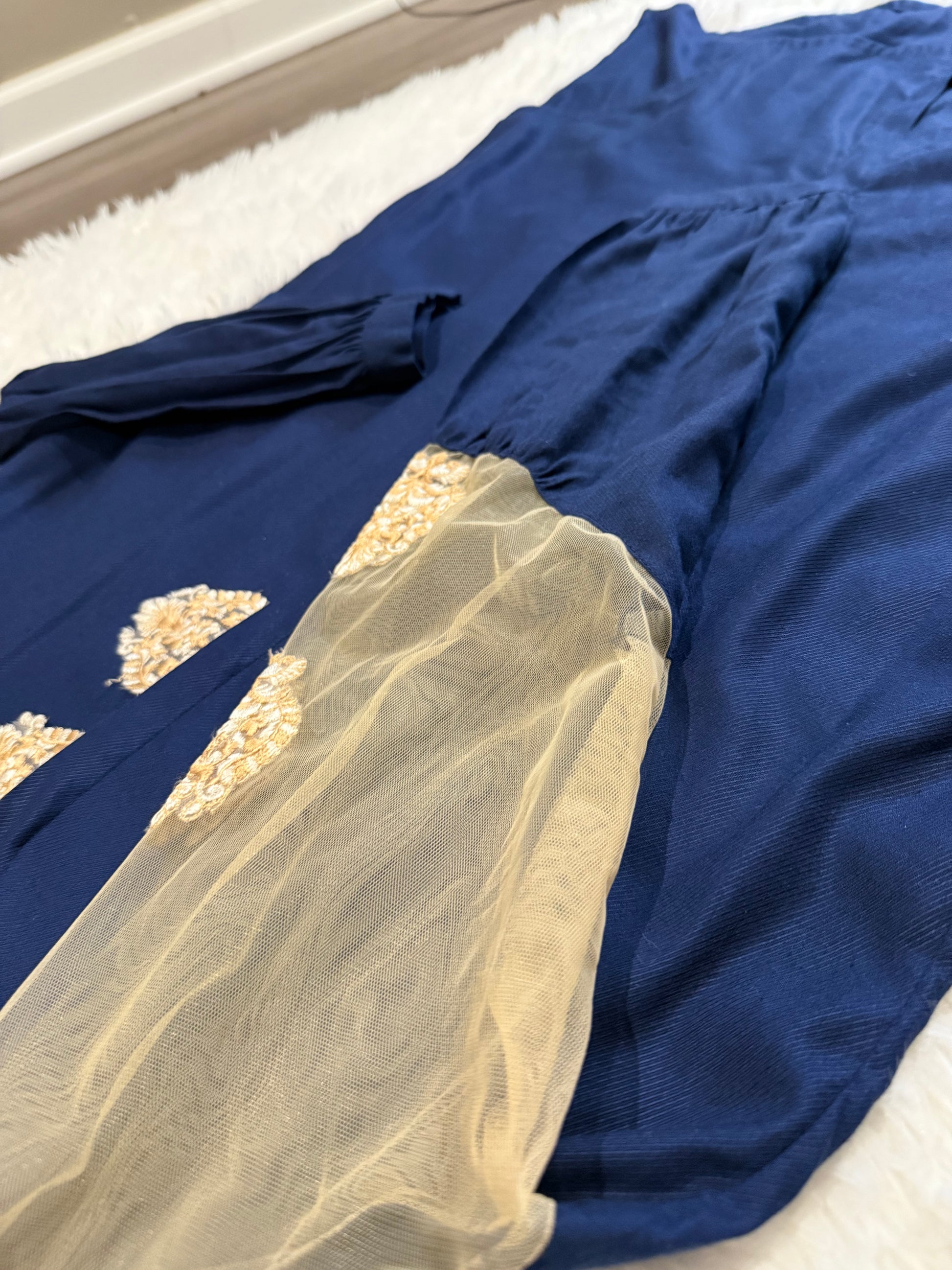 Asifa Nabeel Navy overlap style shirt with Golden Brown Embroidery and Half Lace Sleeves