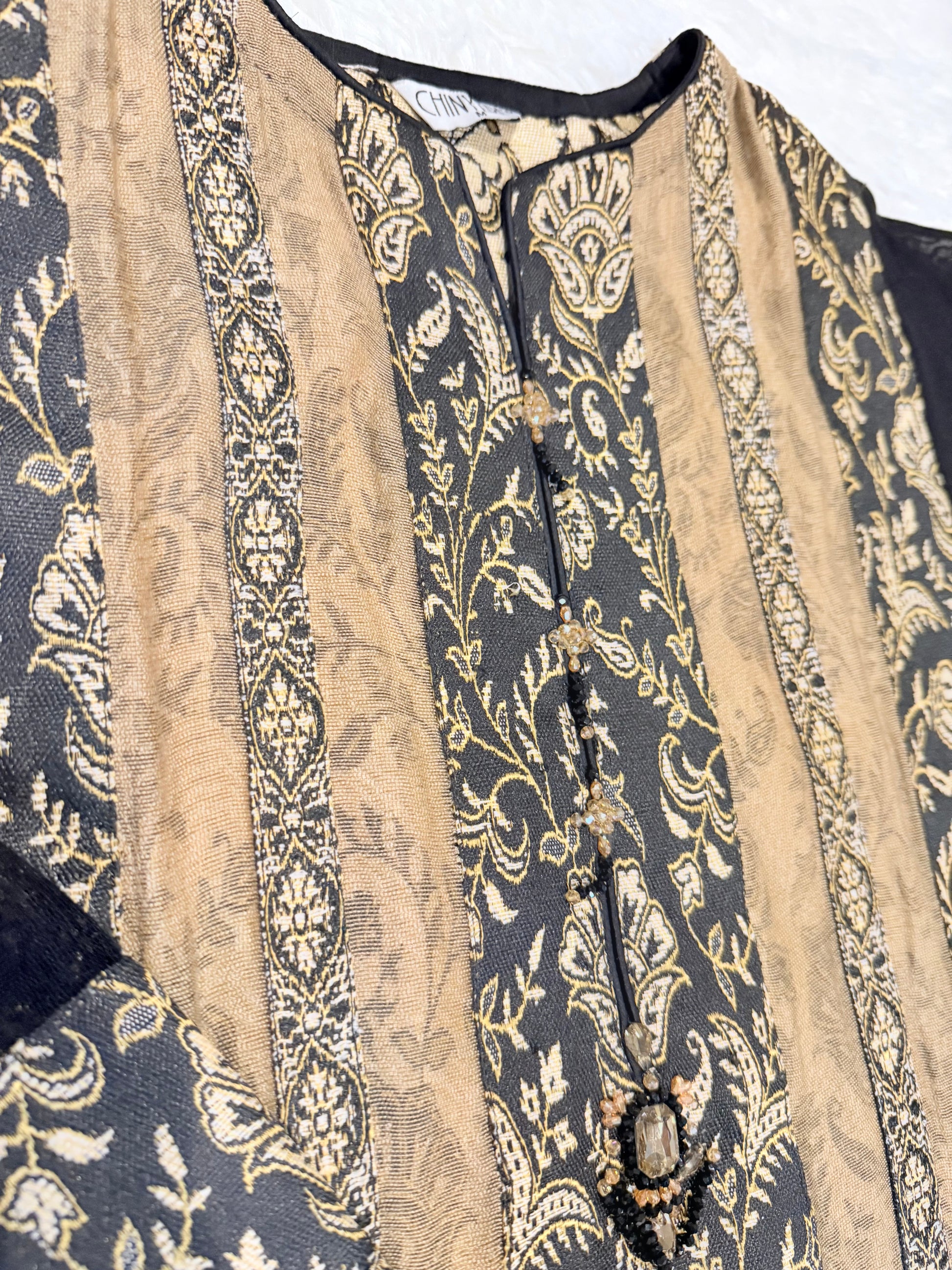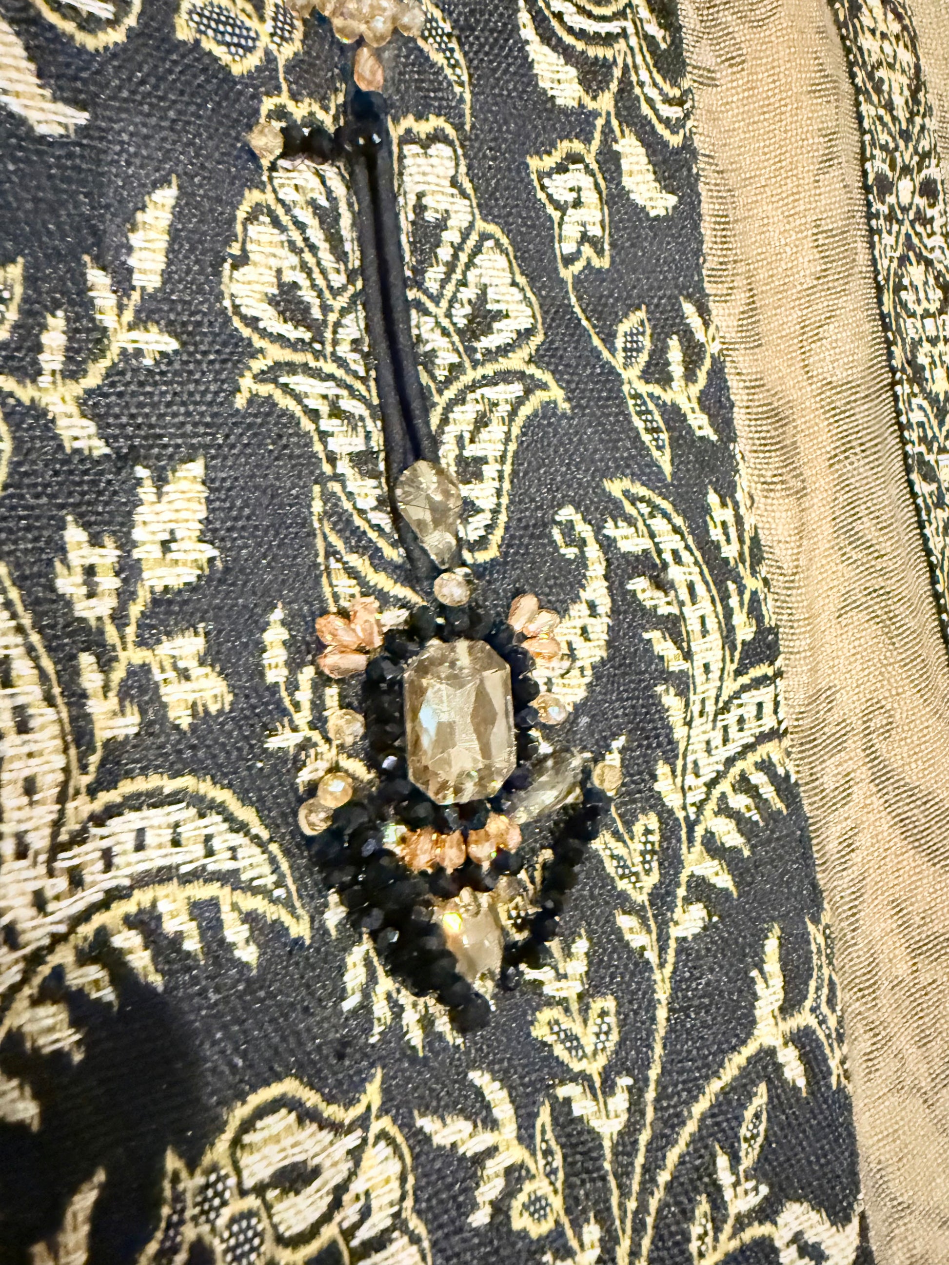 Chinyere Back Cotton Silk shirt with Elegant Jewels on neckline.