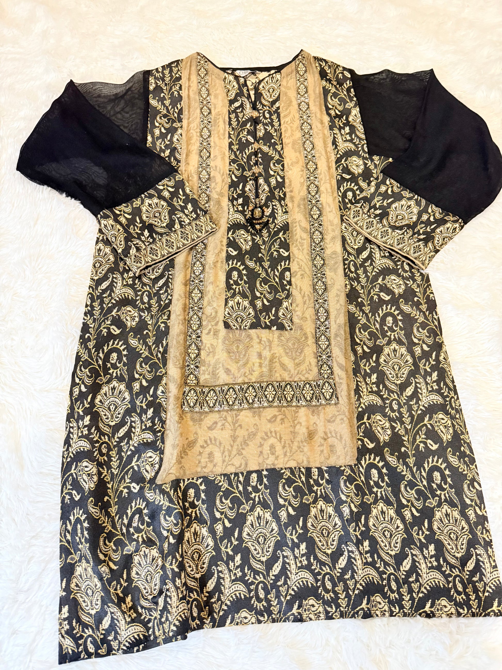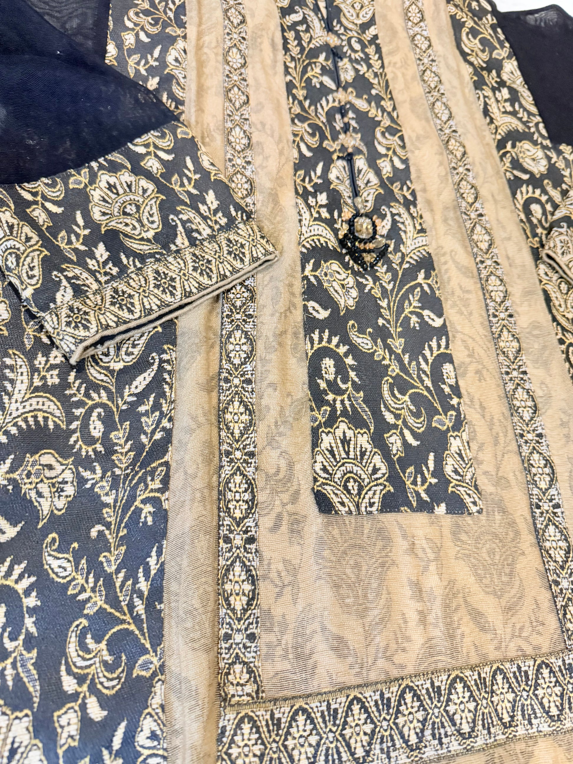 Chinyere Back Cotton Silk shirt with Elegant Jewels on neckline