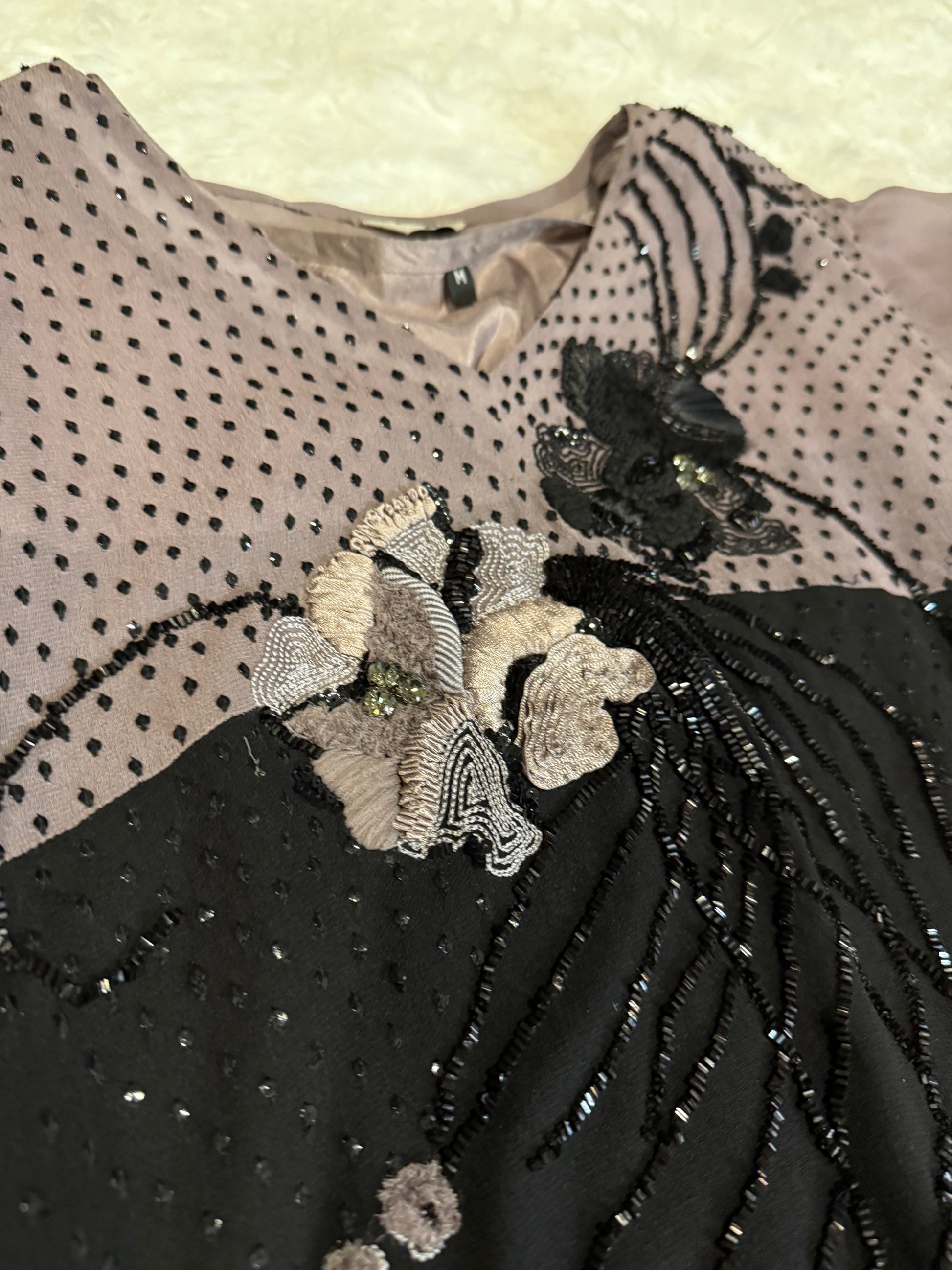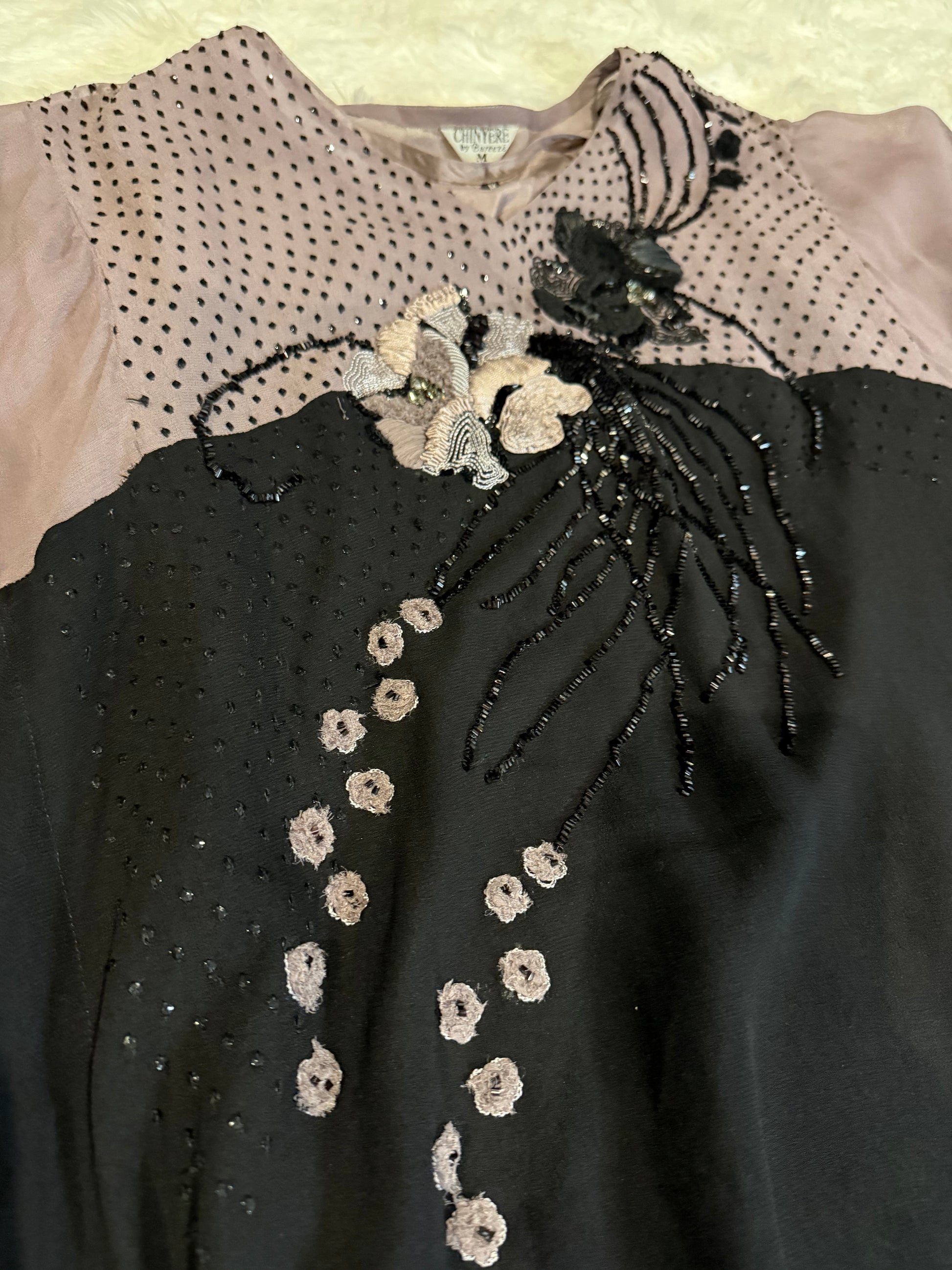 Chinyere Georgette Shirt with Beautiful Purple and Black Embroidery & Sequins