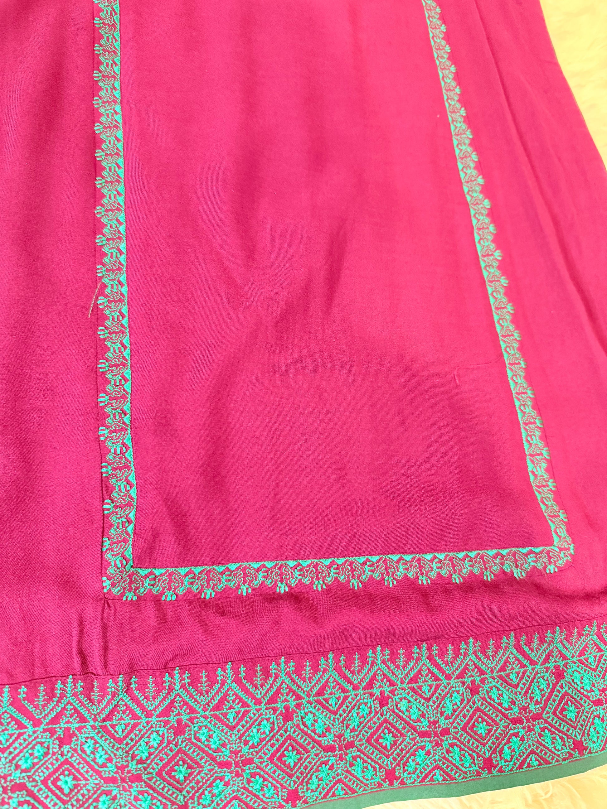 Chinyere Long Shirt with Heavy contrasting embroidery in purple color with Teal Embroidery.