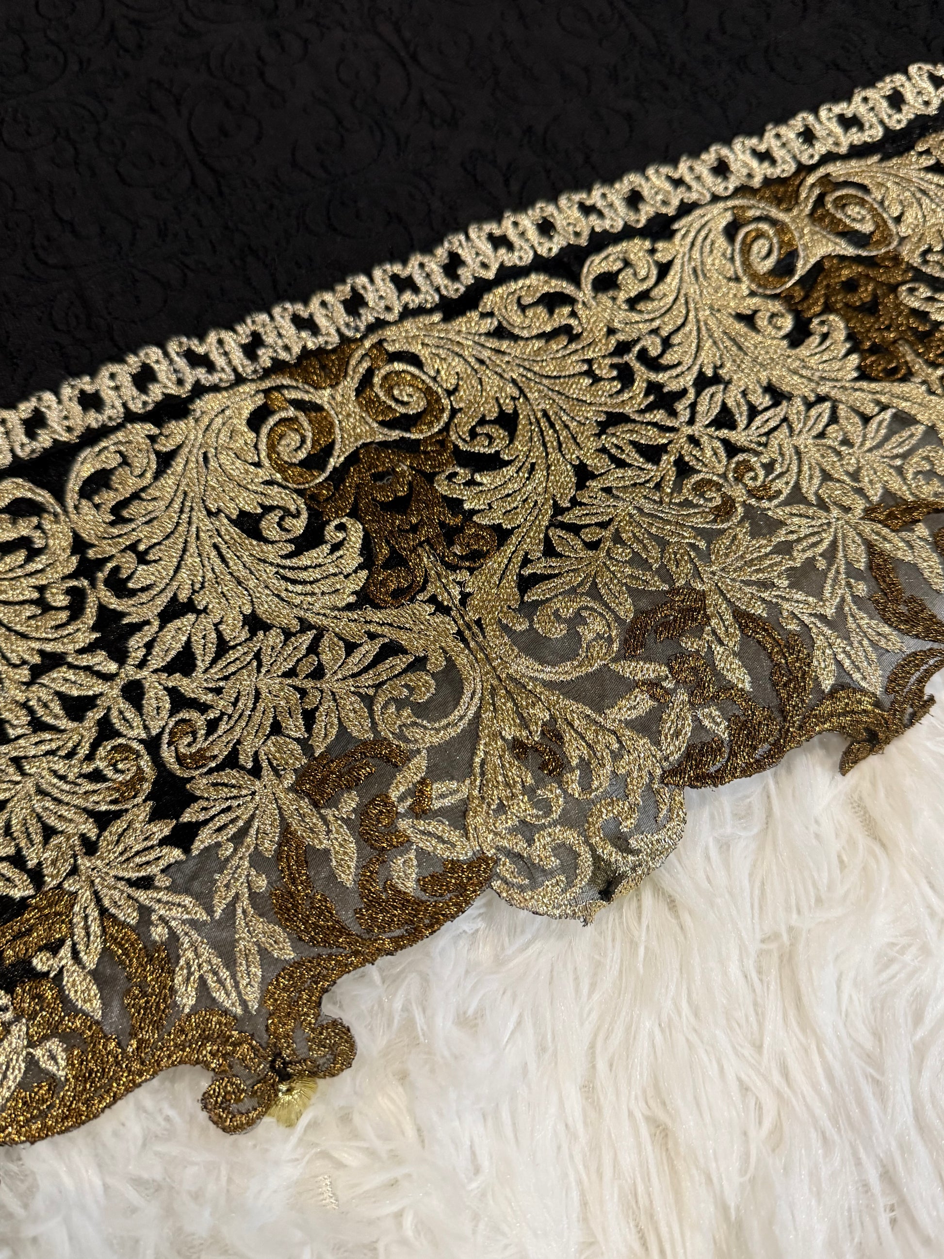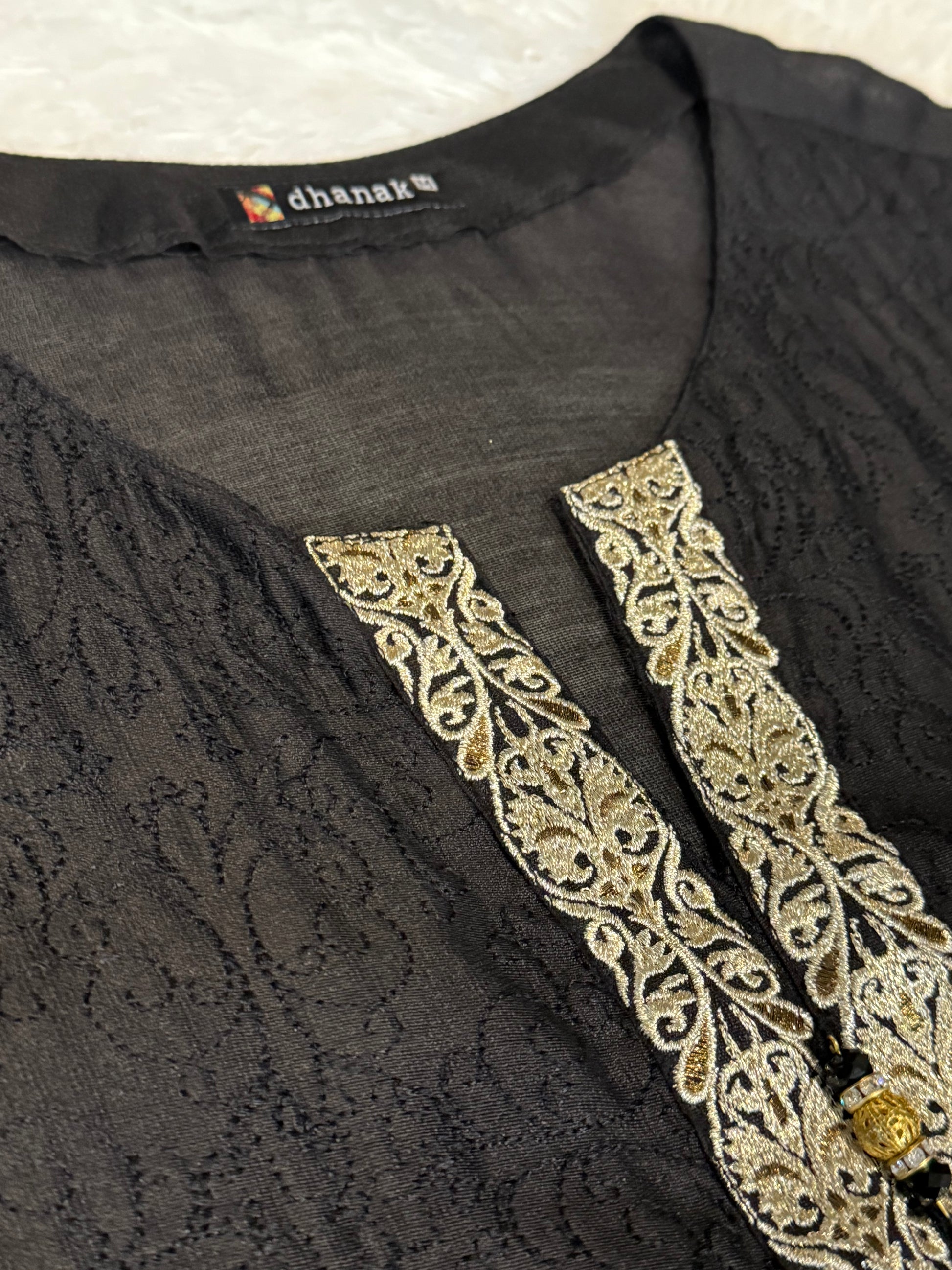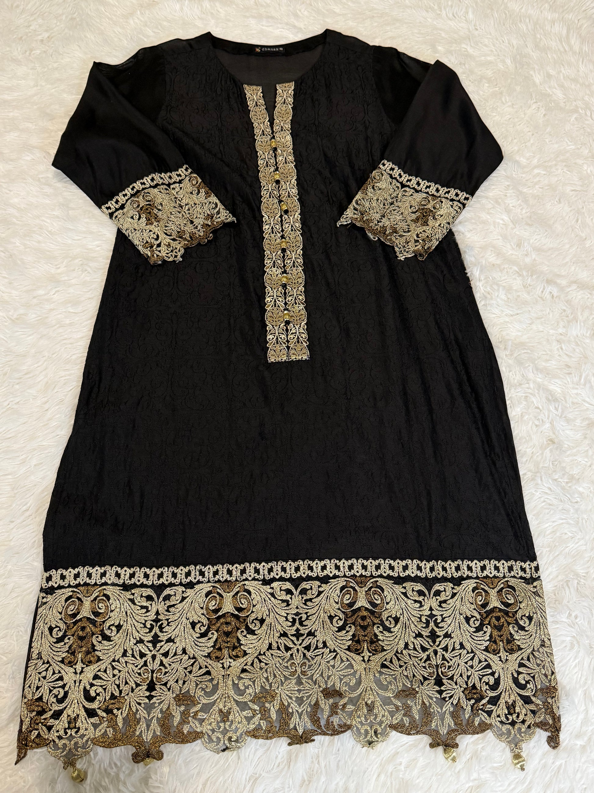 Dhanak Black Kameez with Net Lace Embroidery on Hem an Sleeves