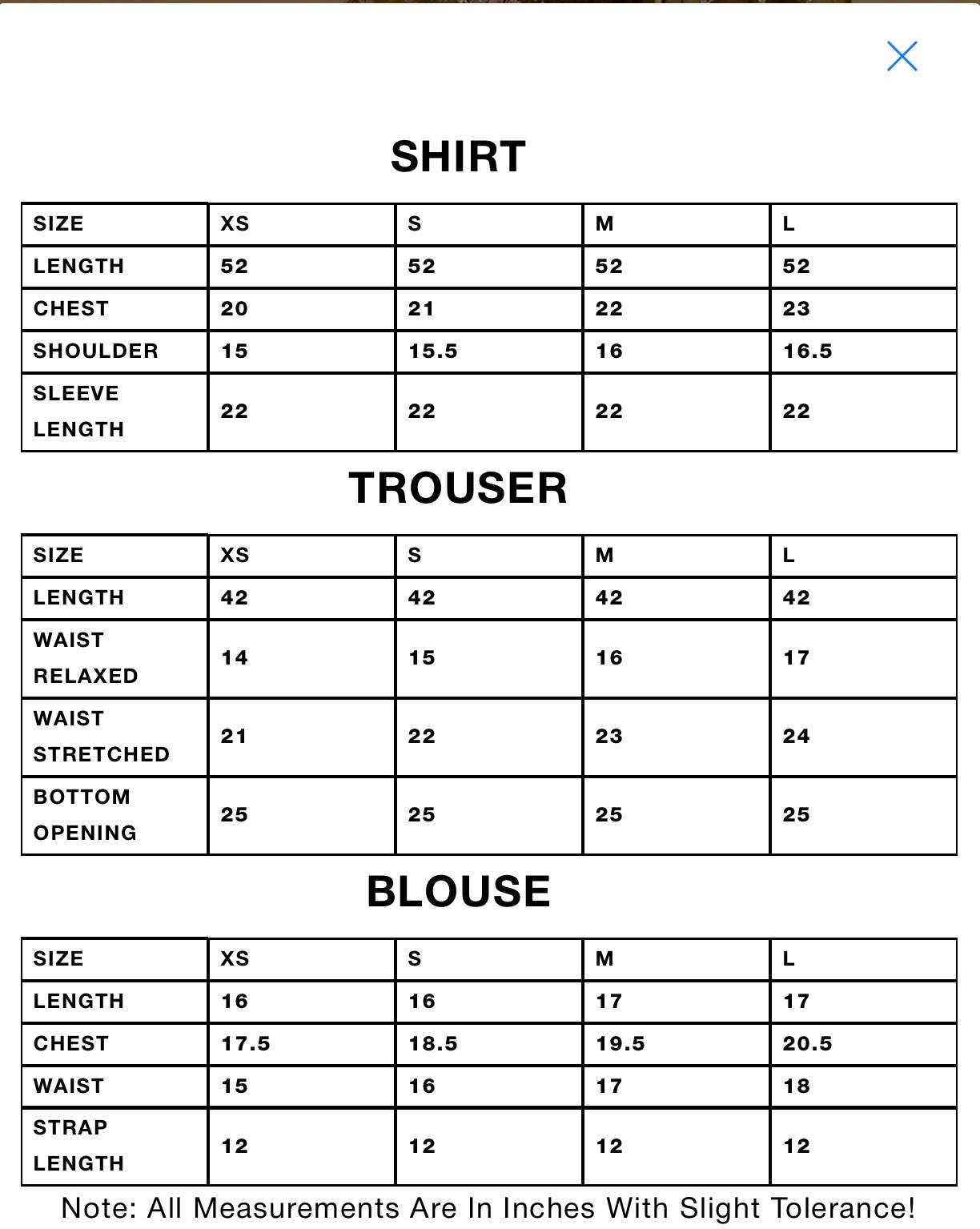 • Fabric: Net Shirt & Raw Silk (Slip & Trouser)