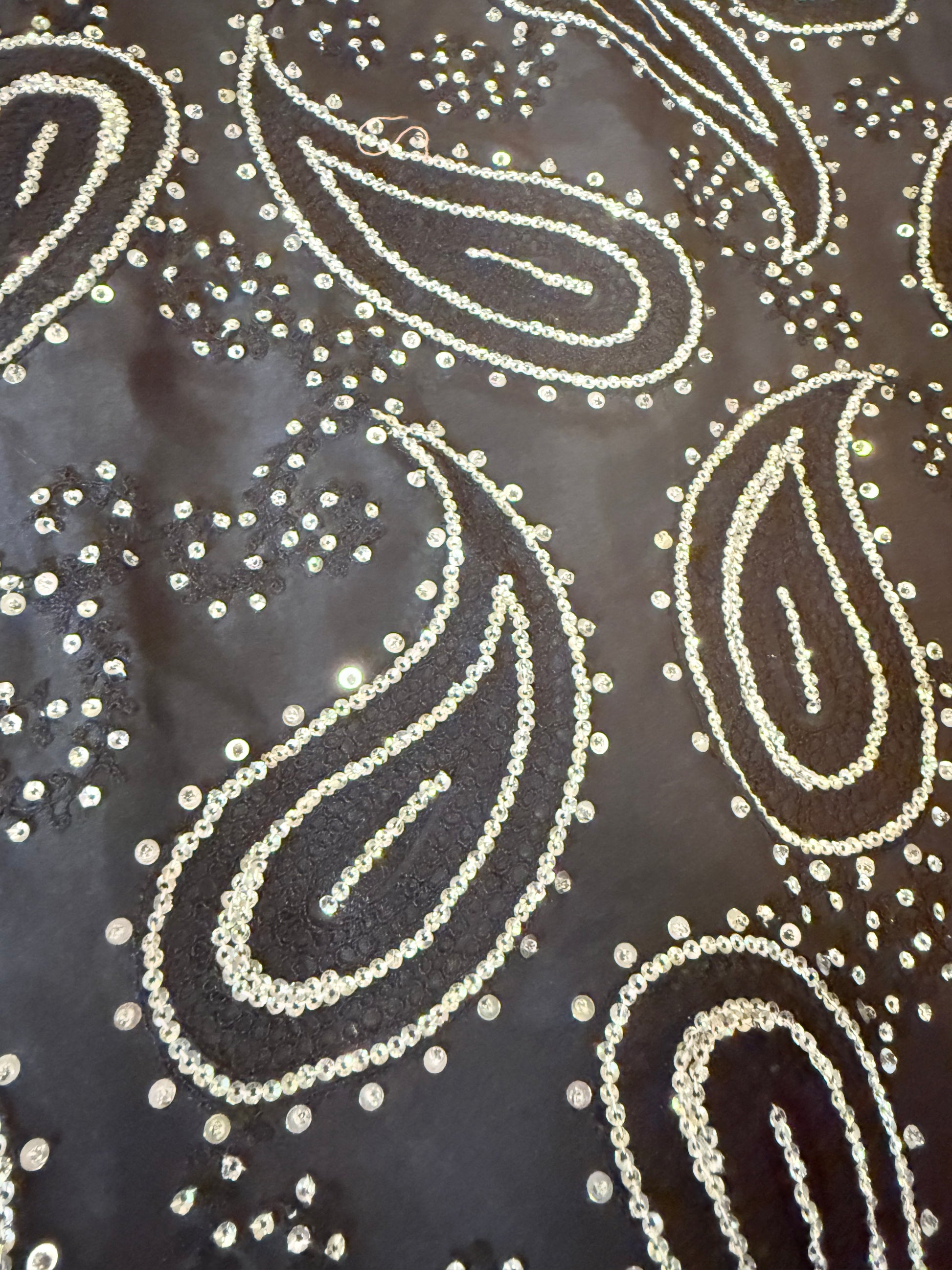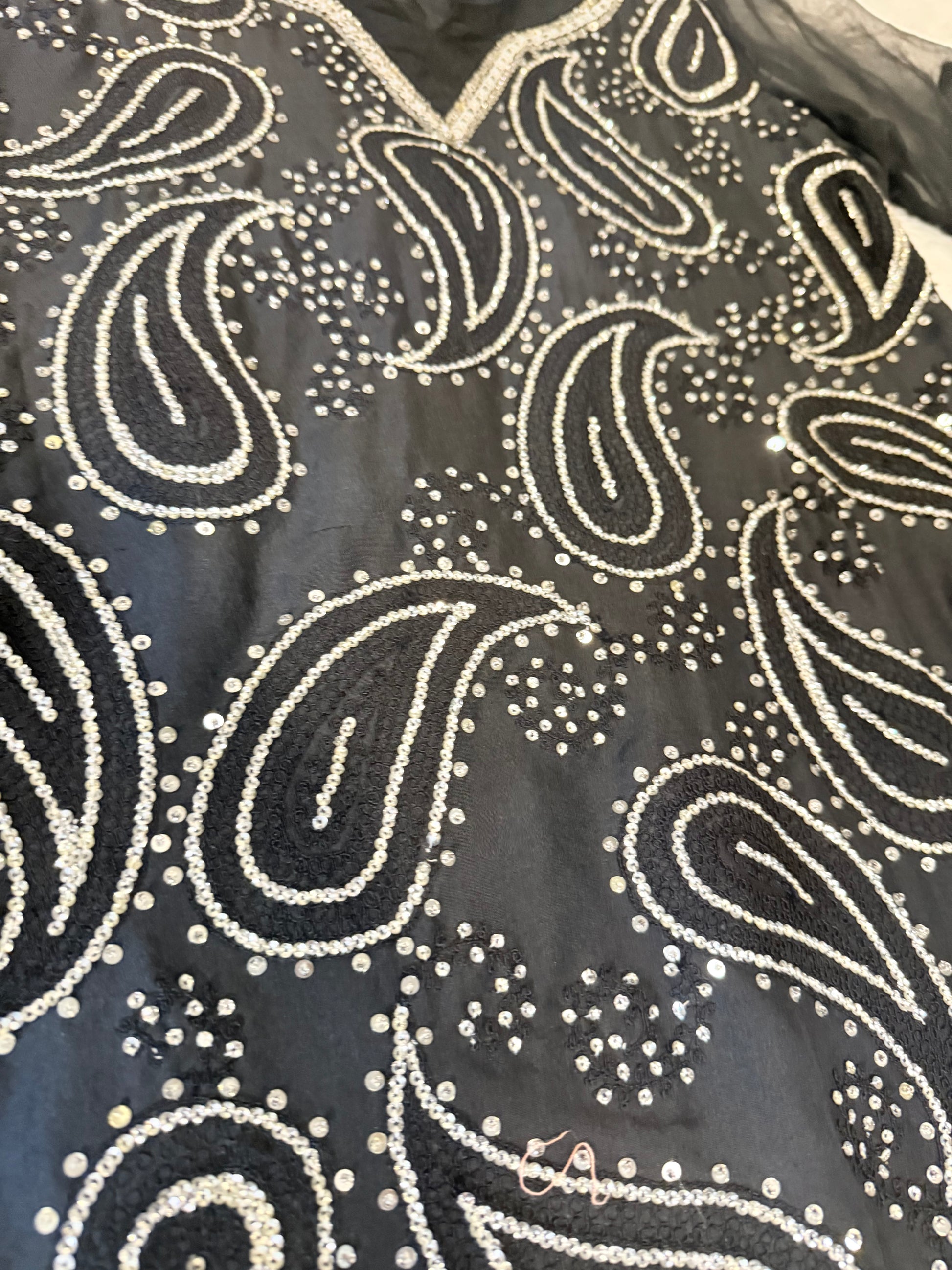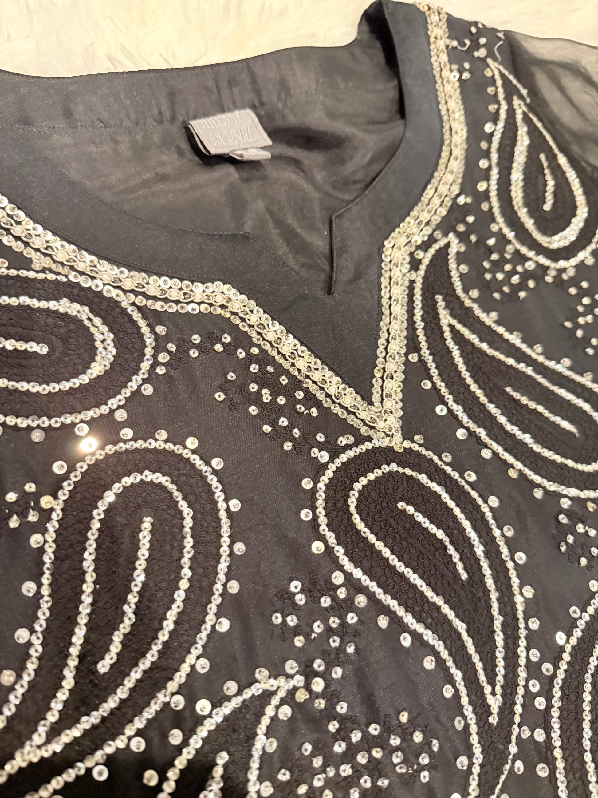 HSY Black Silk Shirt with Heavy Silver Sequin Embroidery
