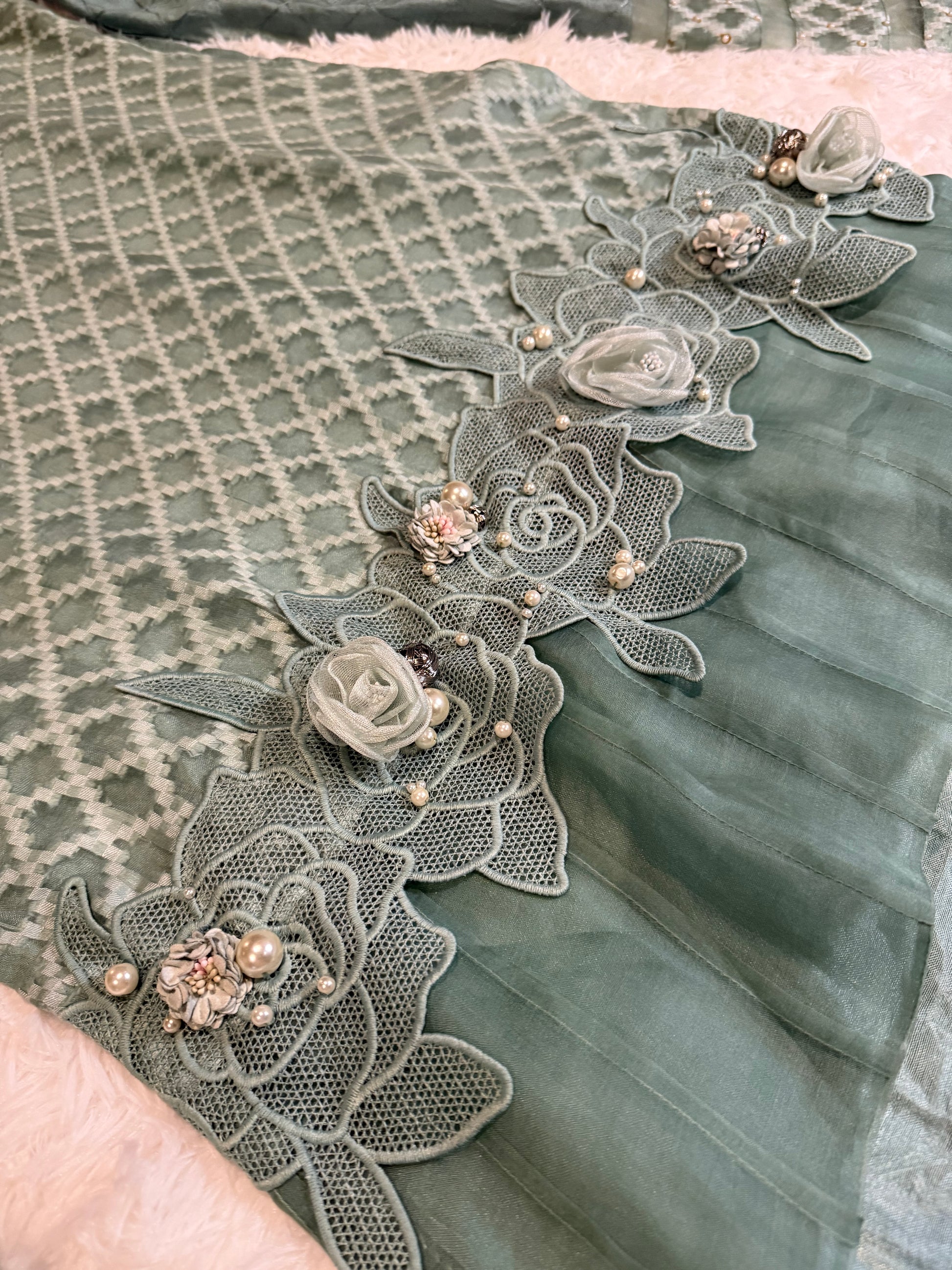 Jeem Green Organza Heavily Embroidered Kameez