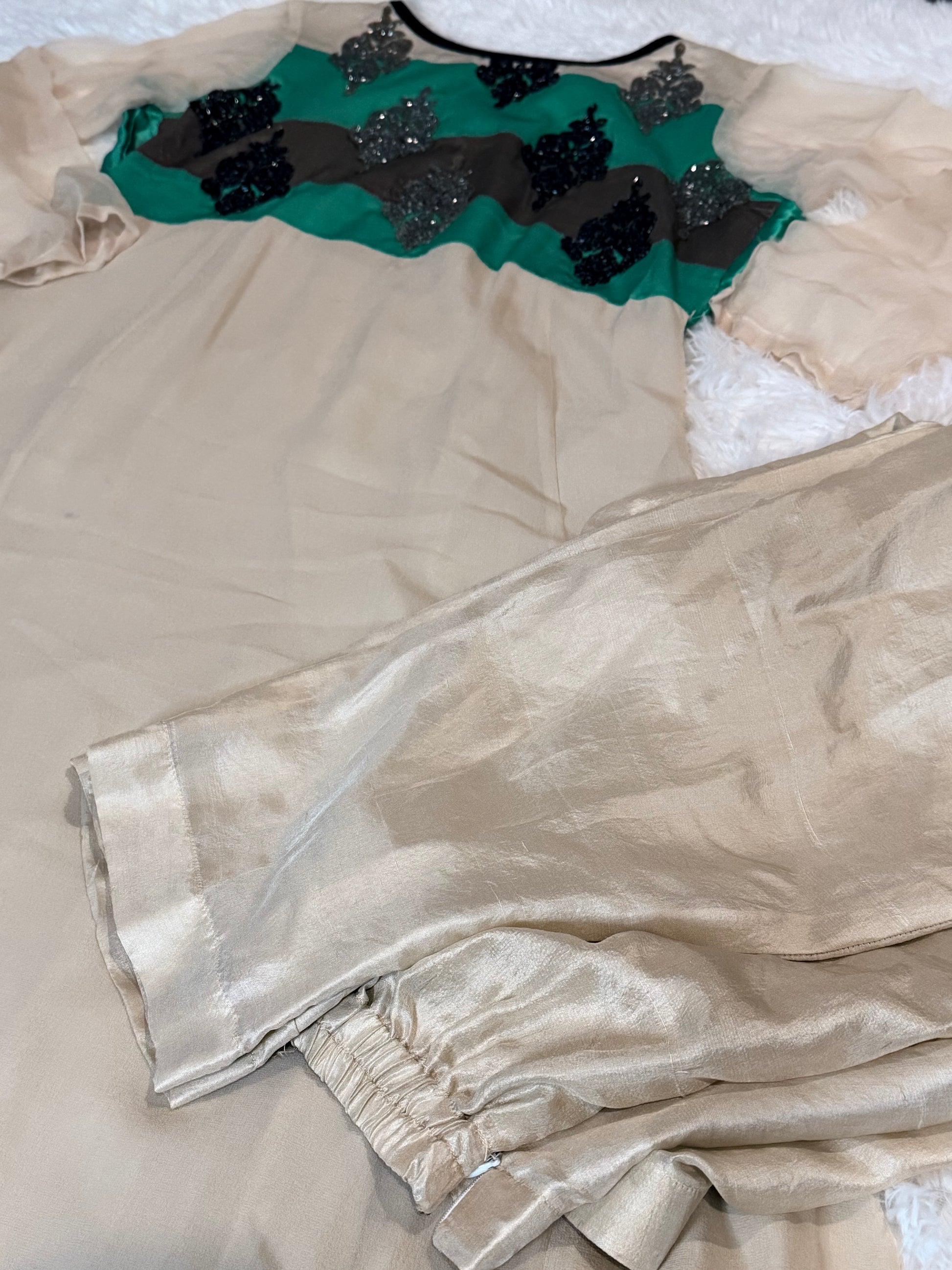 Karma Drop Hem Long Hi-Lo Kameez with Black Sequins.