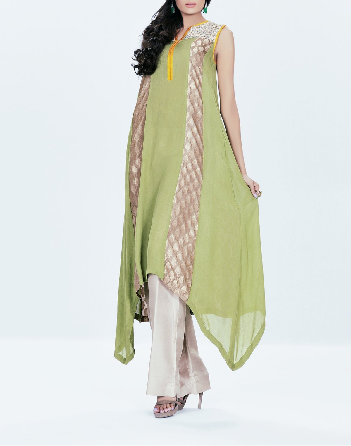 Karma Chiffon and Jamawar Drop Corner Kameez with Dupatta