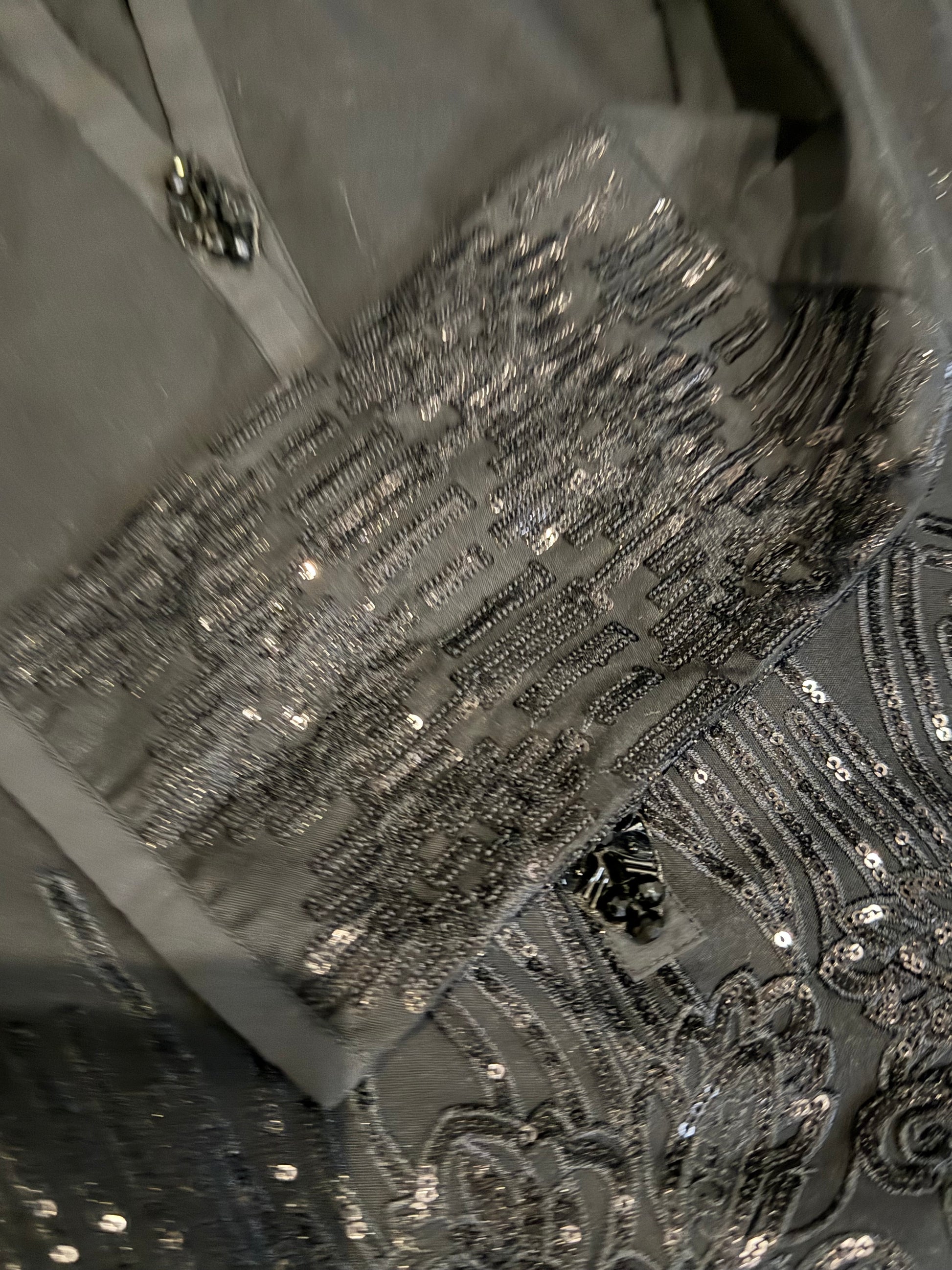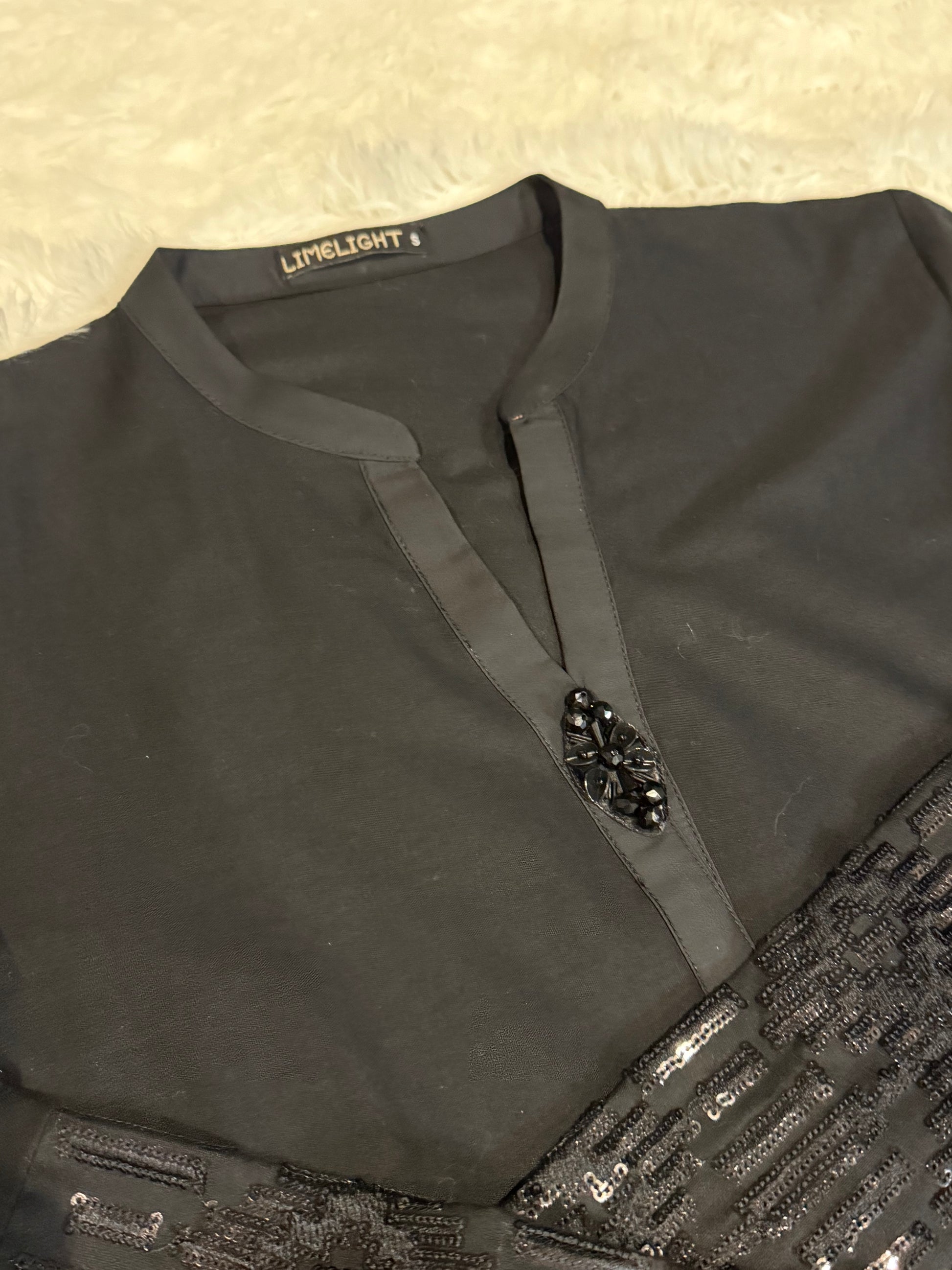 Limelight Black Kameez with Sequins. Shirt had large sequin border with sequins on sleeves and sequined buttons.