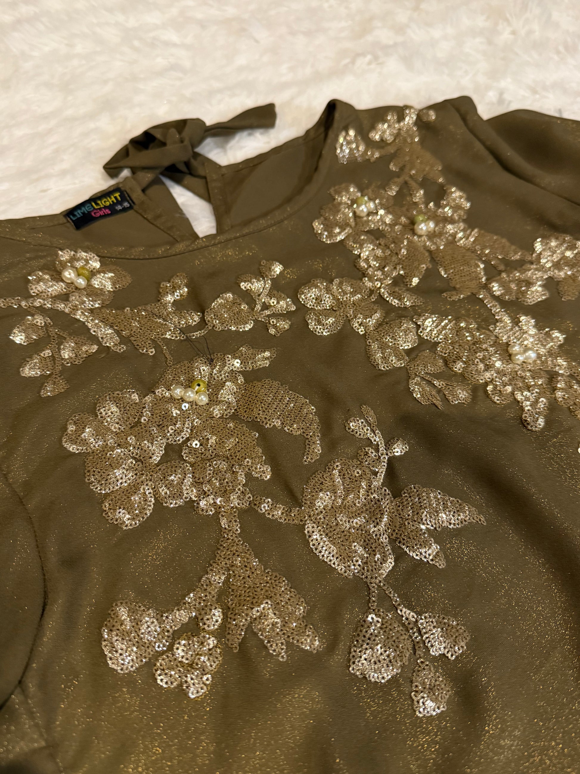 Limelight Hi-Lo Long Kameez with Golden Embroidery