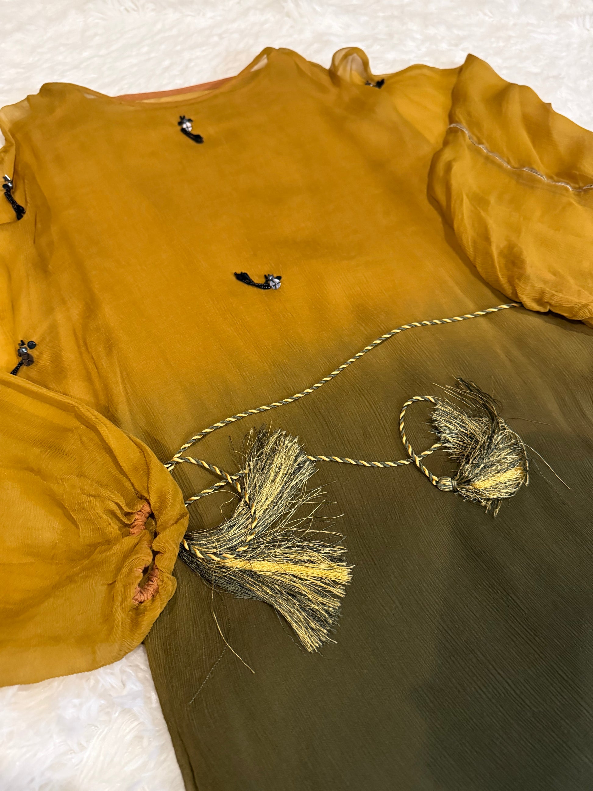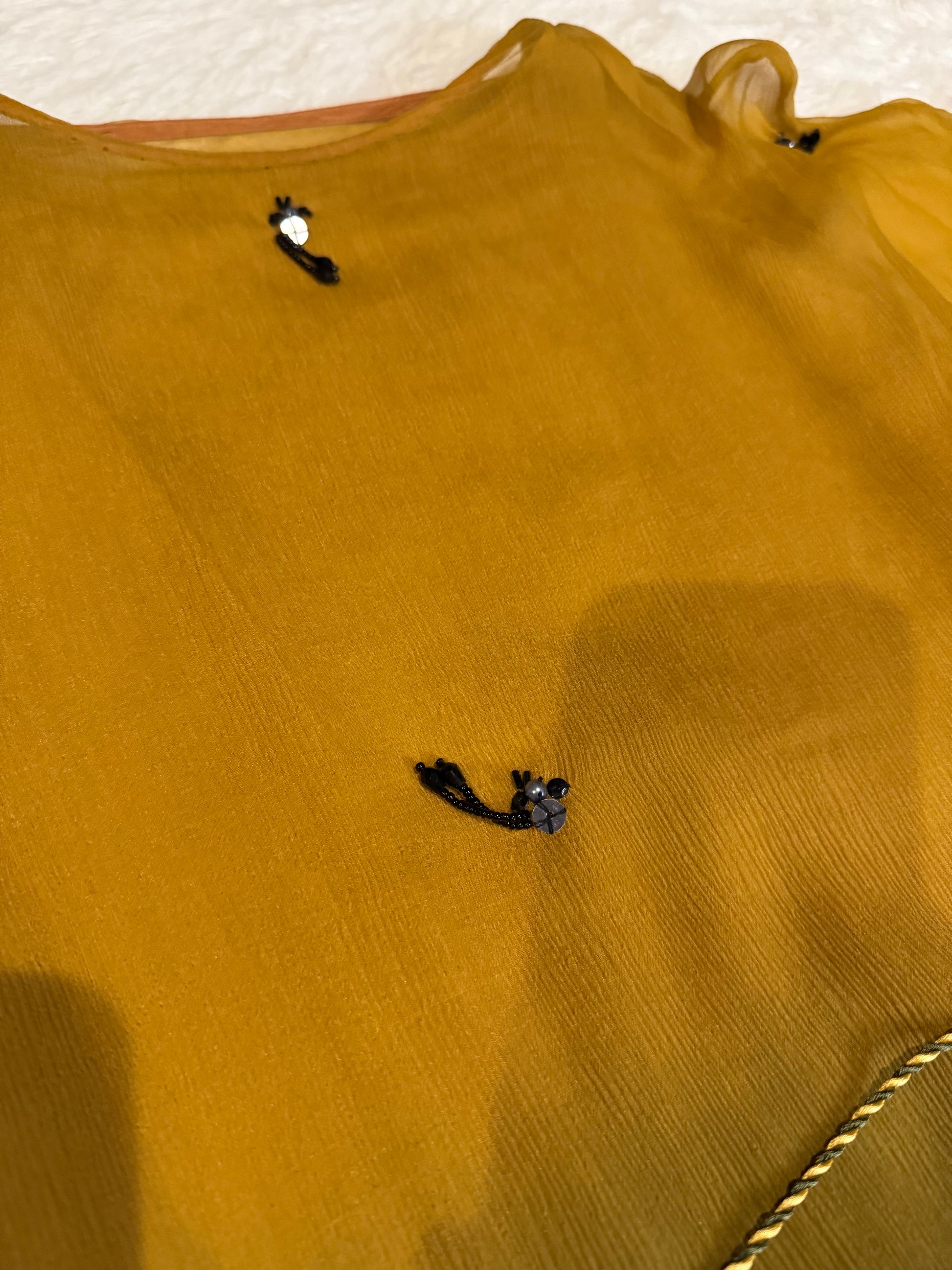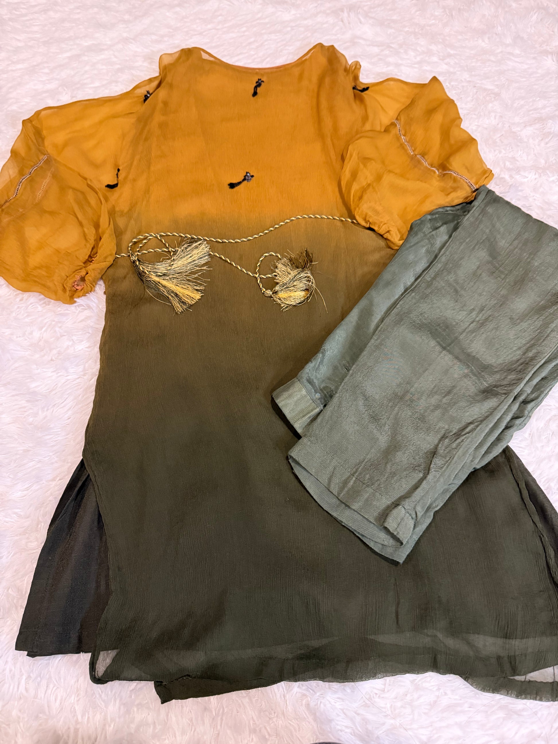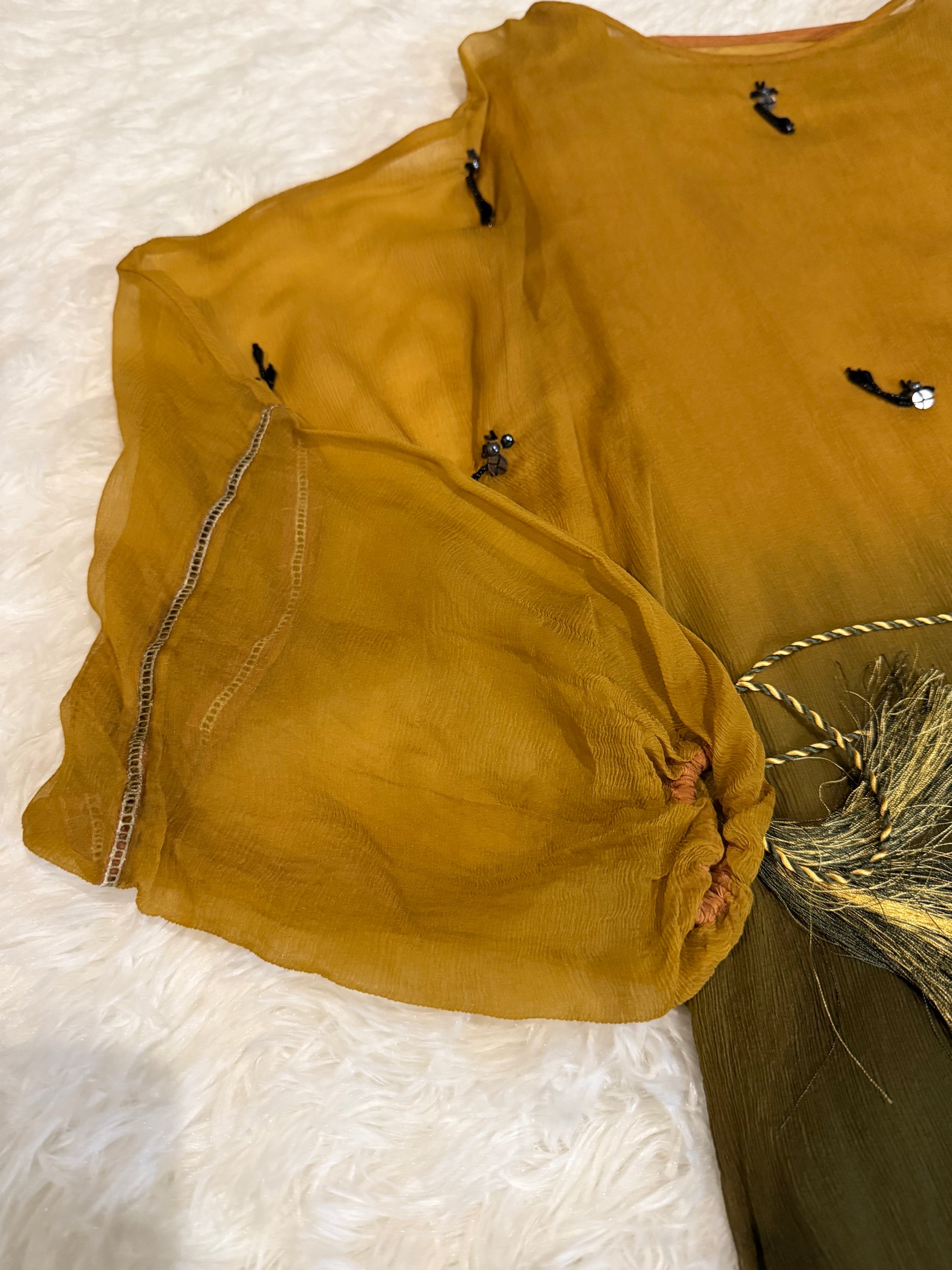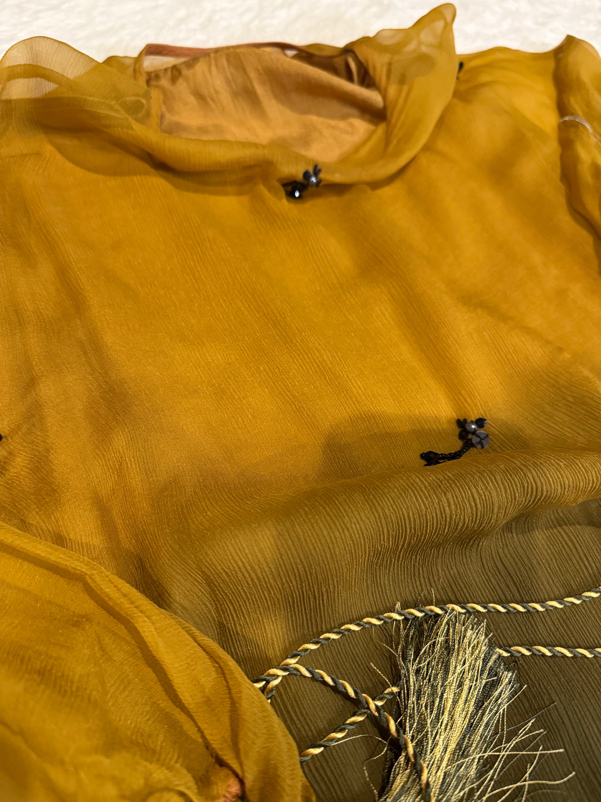 Maria B Mustard & Olive Green Kameez with Black Embellishments on Kameez.