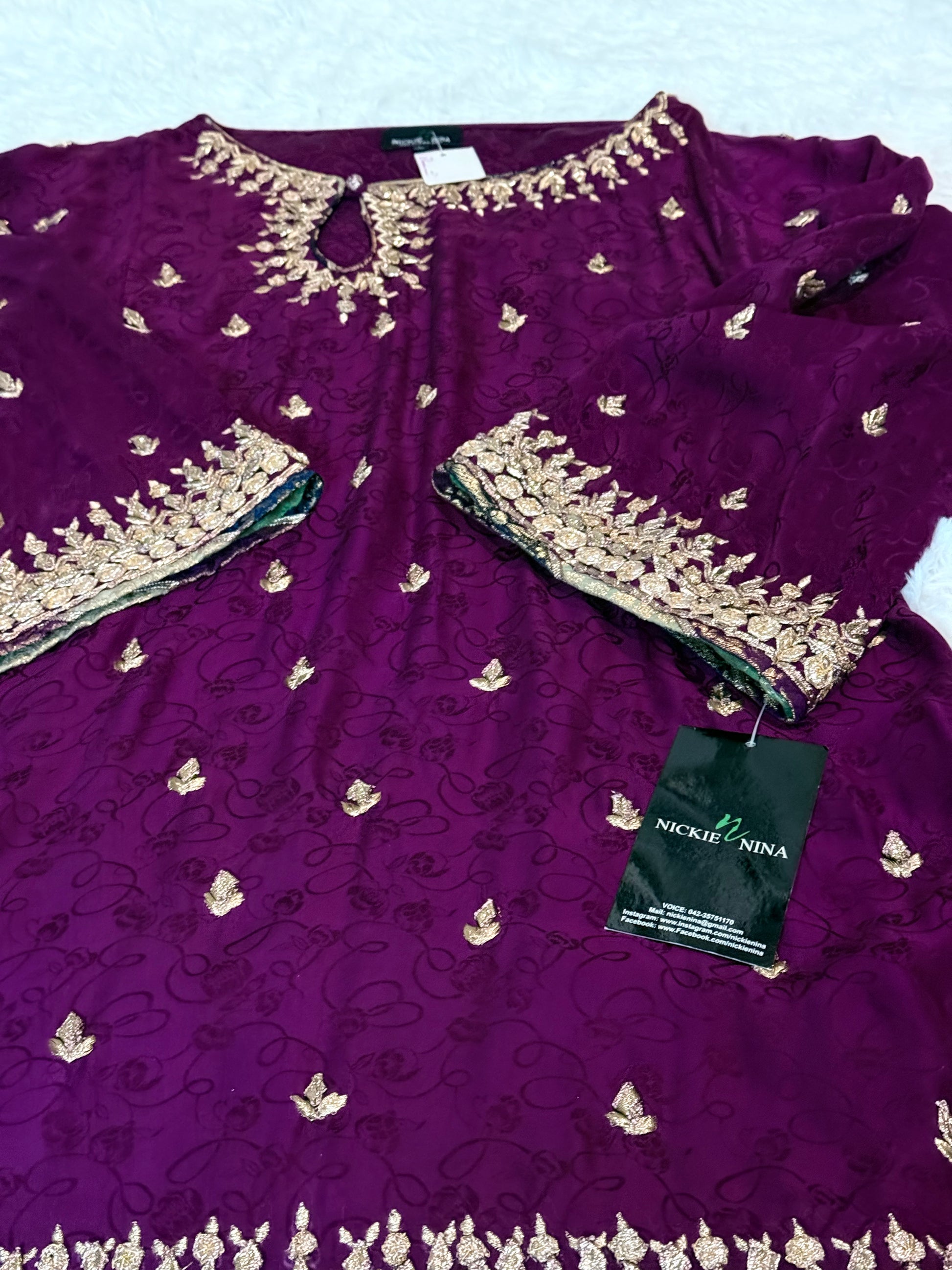 Nickie Nina Plum Formal Shirt with Tulip Shalwar