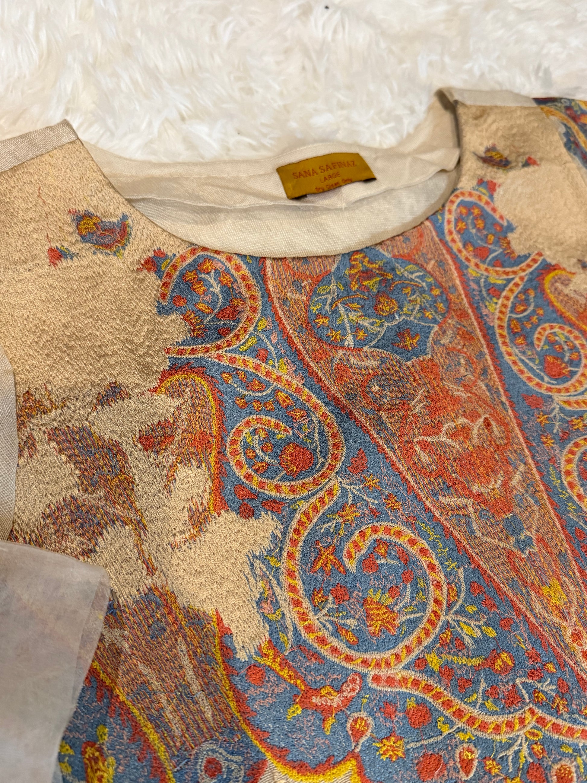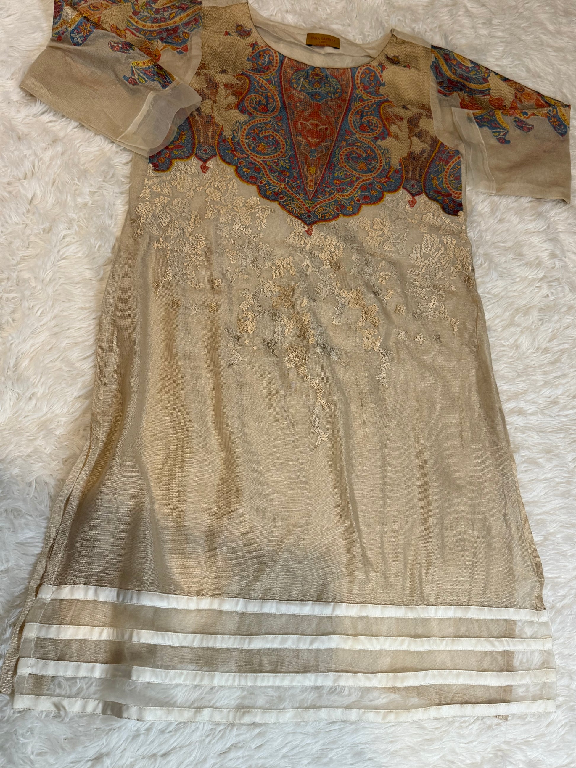 Sana Safinaz Cotton Silk Kameez with Heavy Embroidery around Neckline, Body and Sleeves.