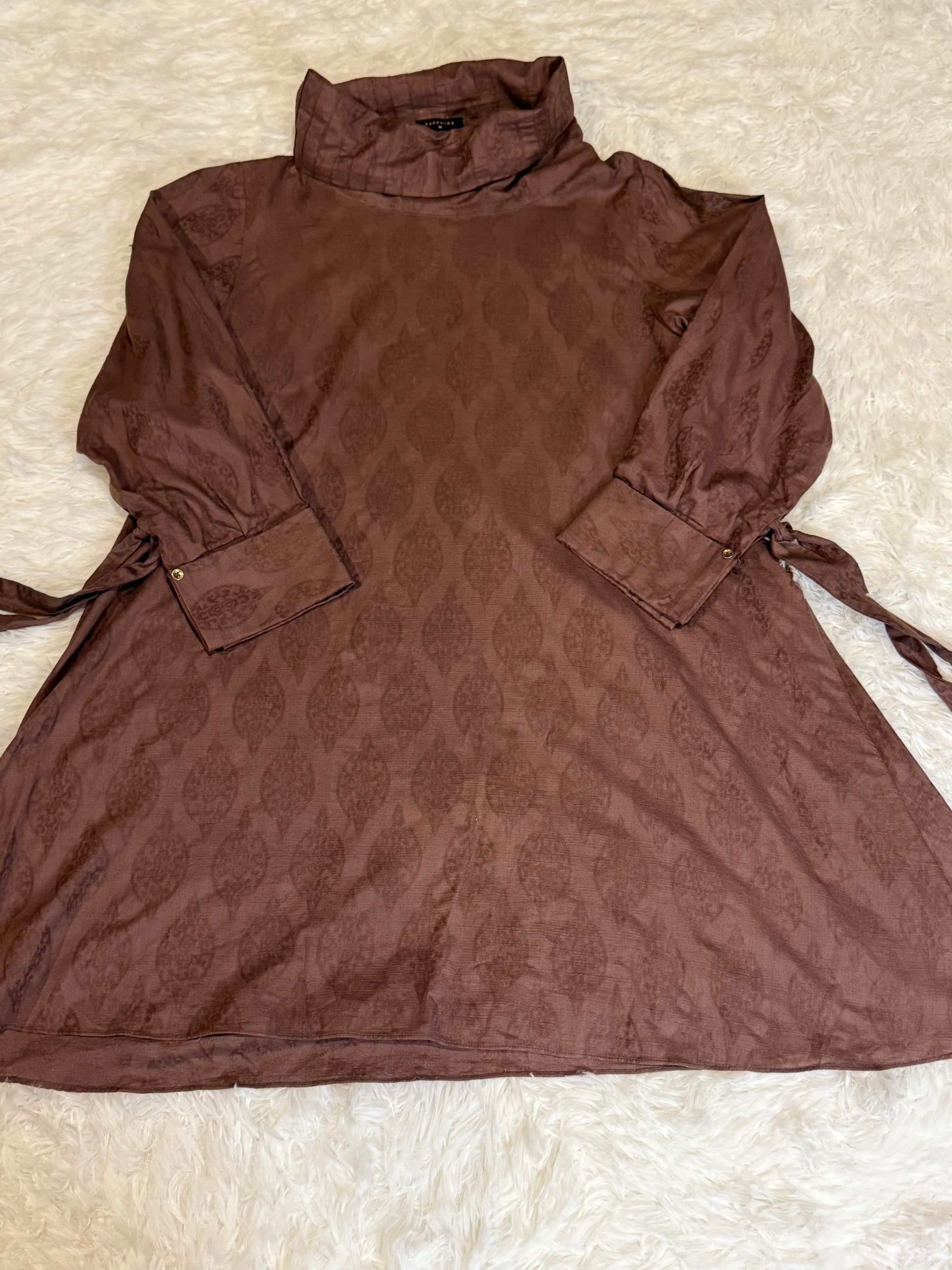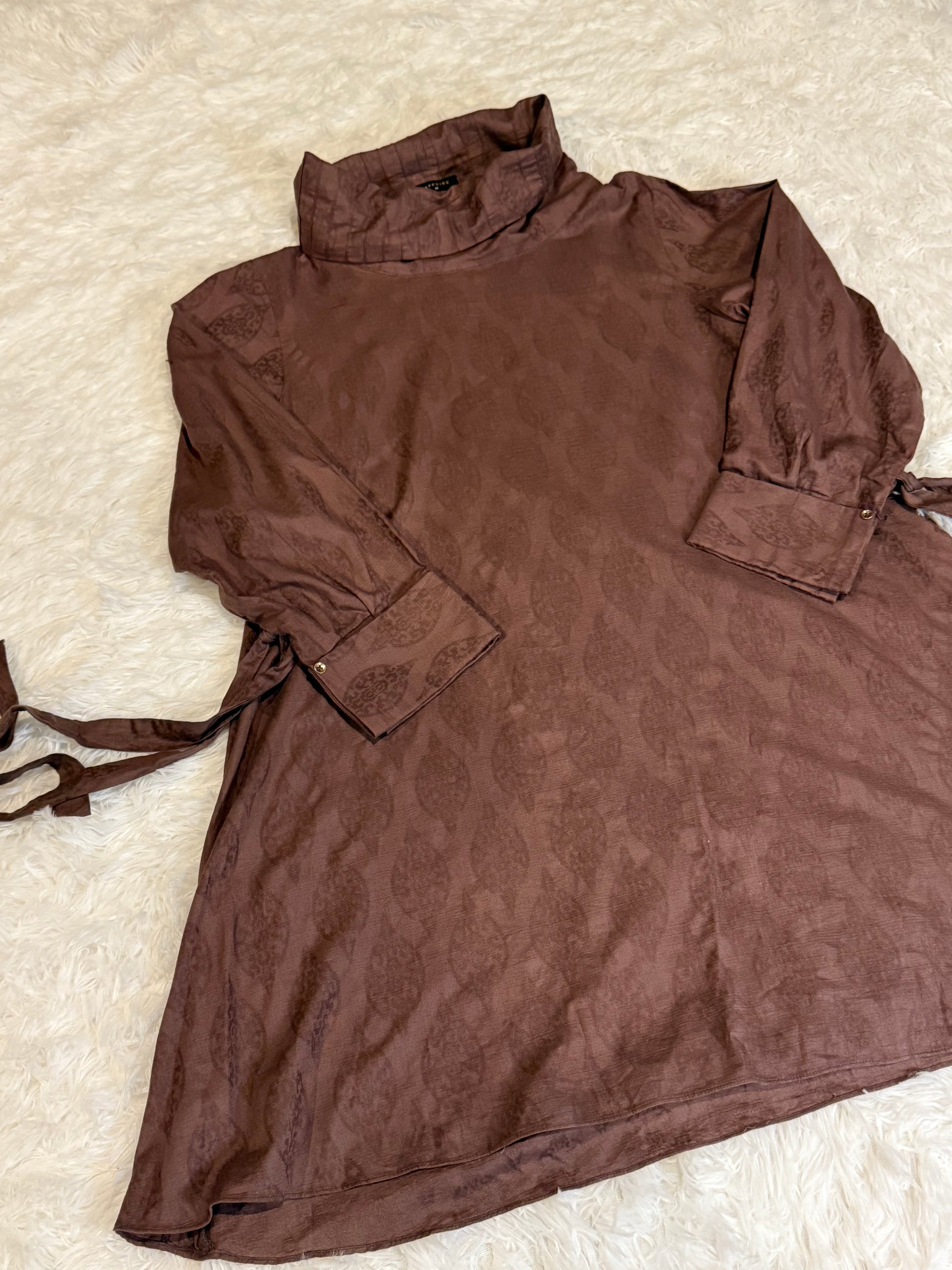 Sapphire Chocolate Brown Baby Doll style Kurta with High Neck and Ties on Sleeves.