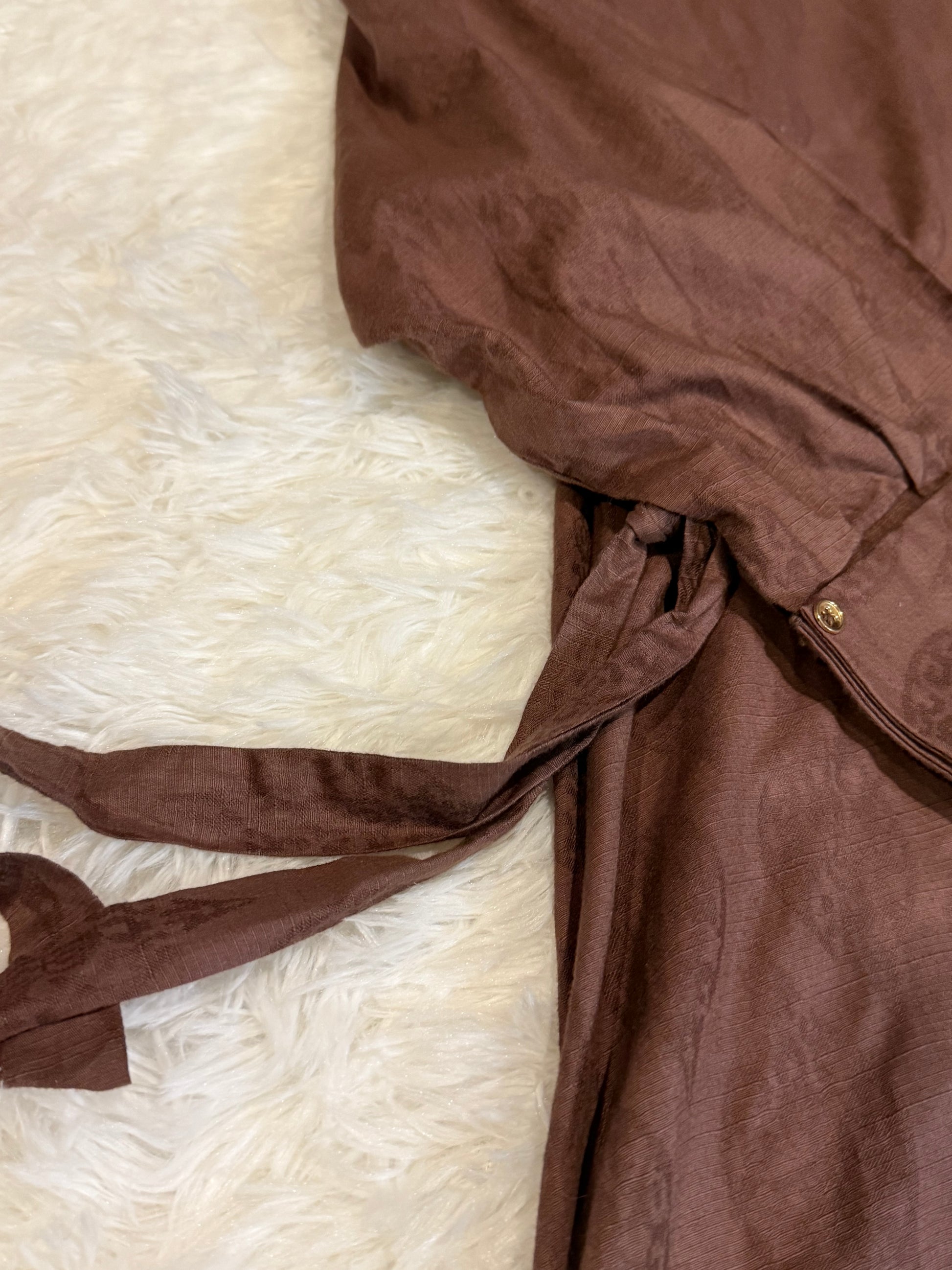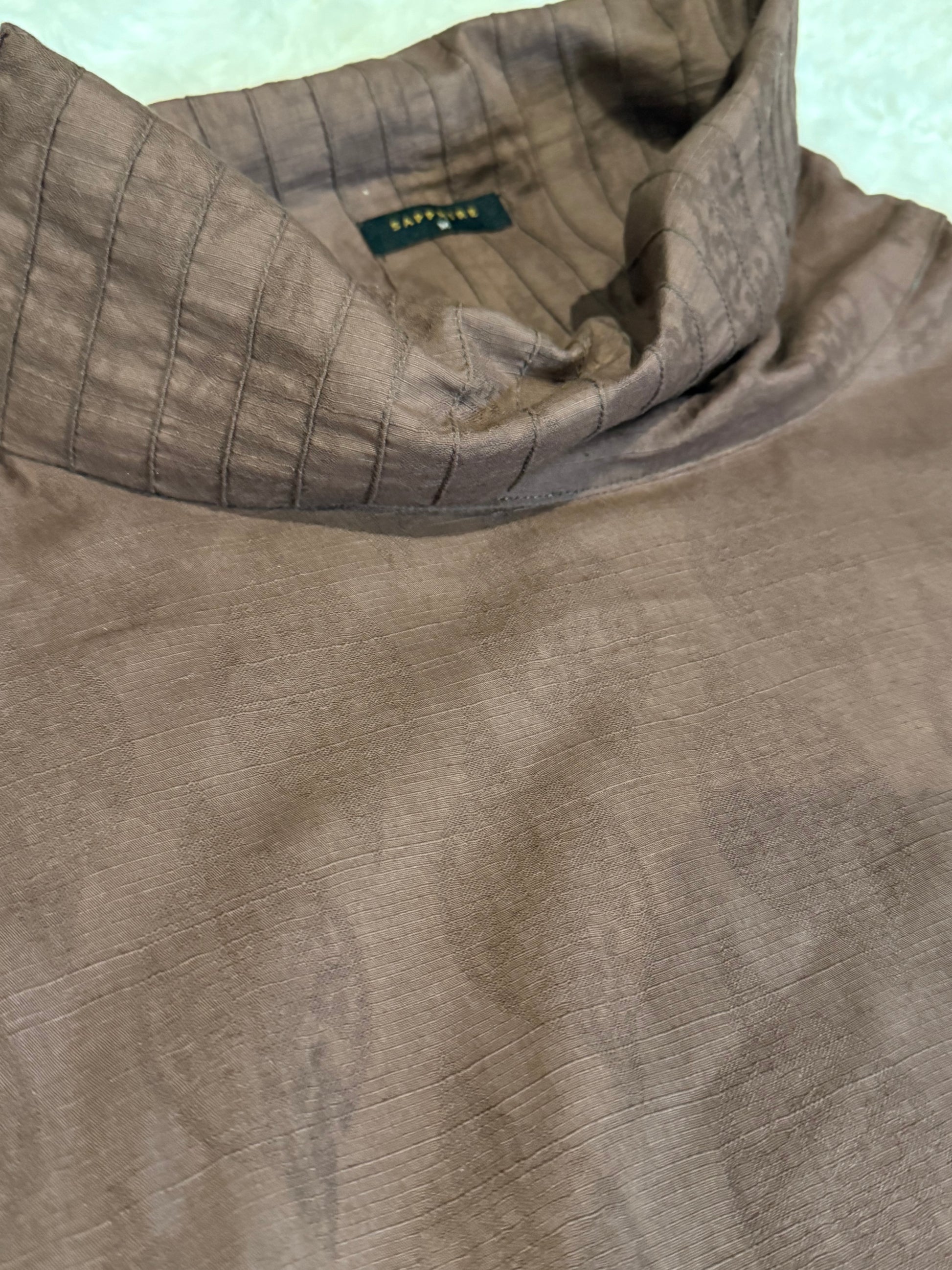 Sapphire Chocolate Brown Baby Doll style Kurta with High Neck and Ties on Sleeves