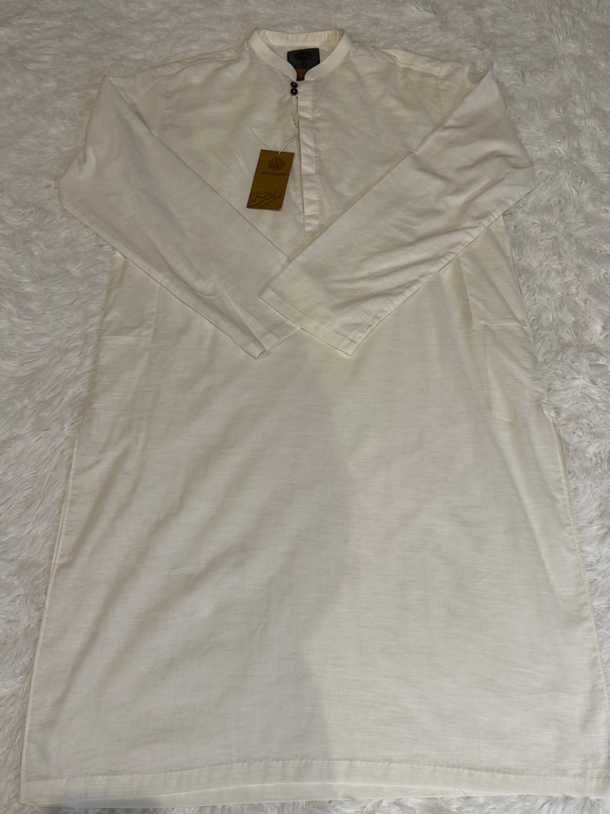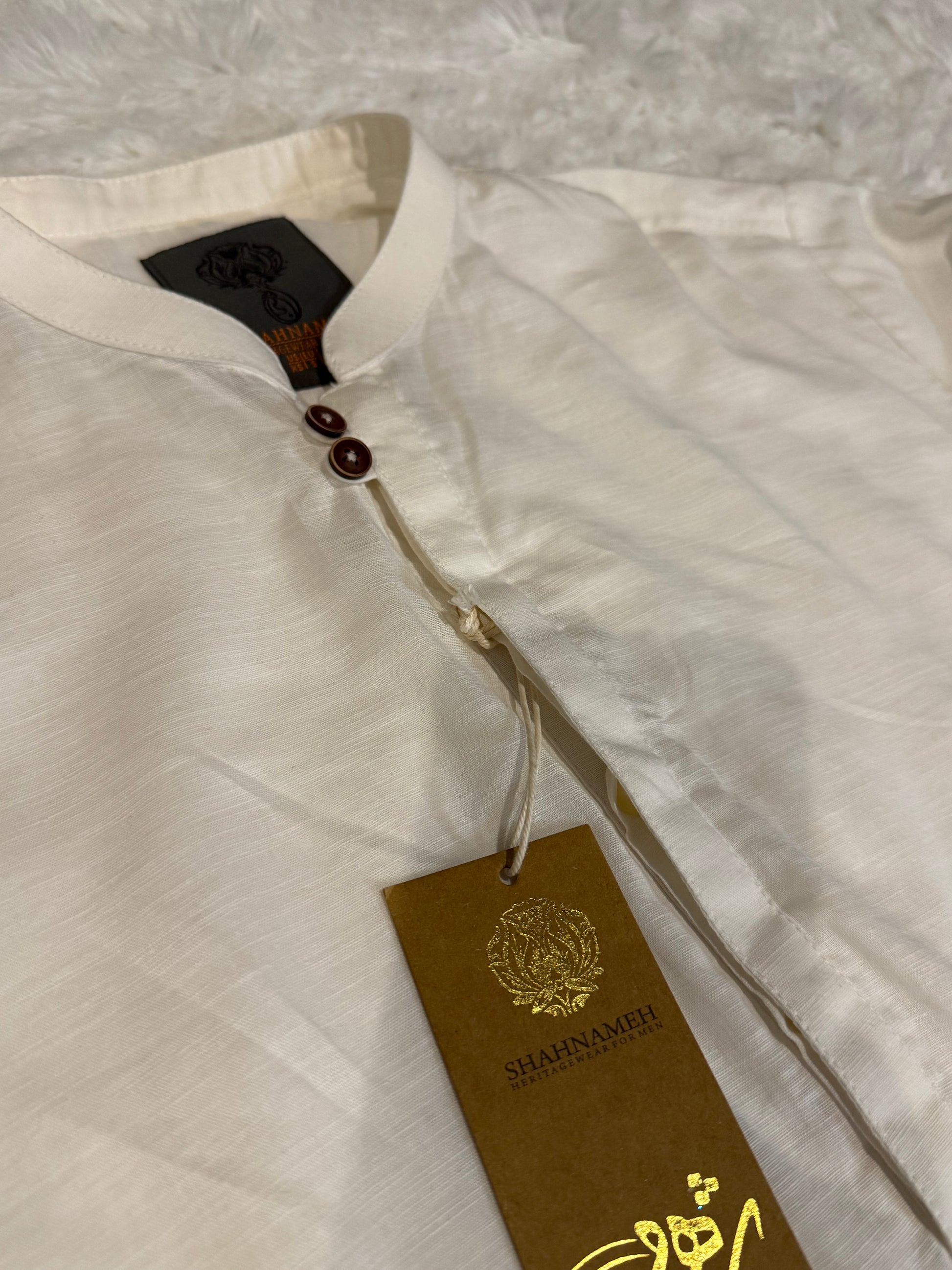 Shahnameh Kurta White with Brown Wooden Accent Buttons.