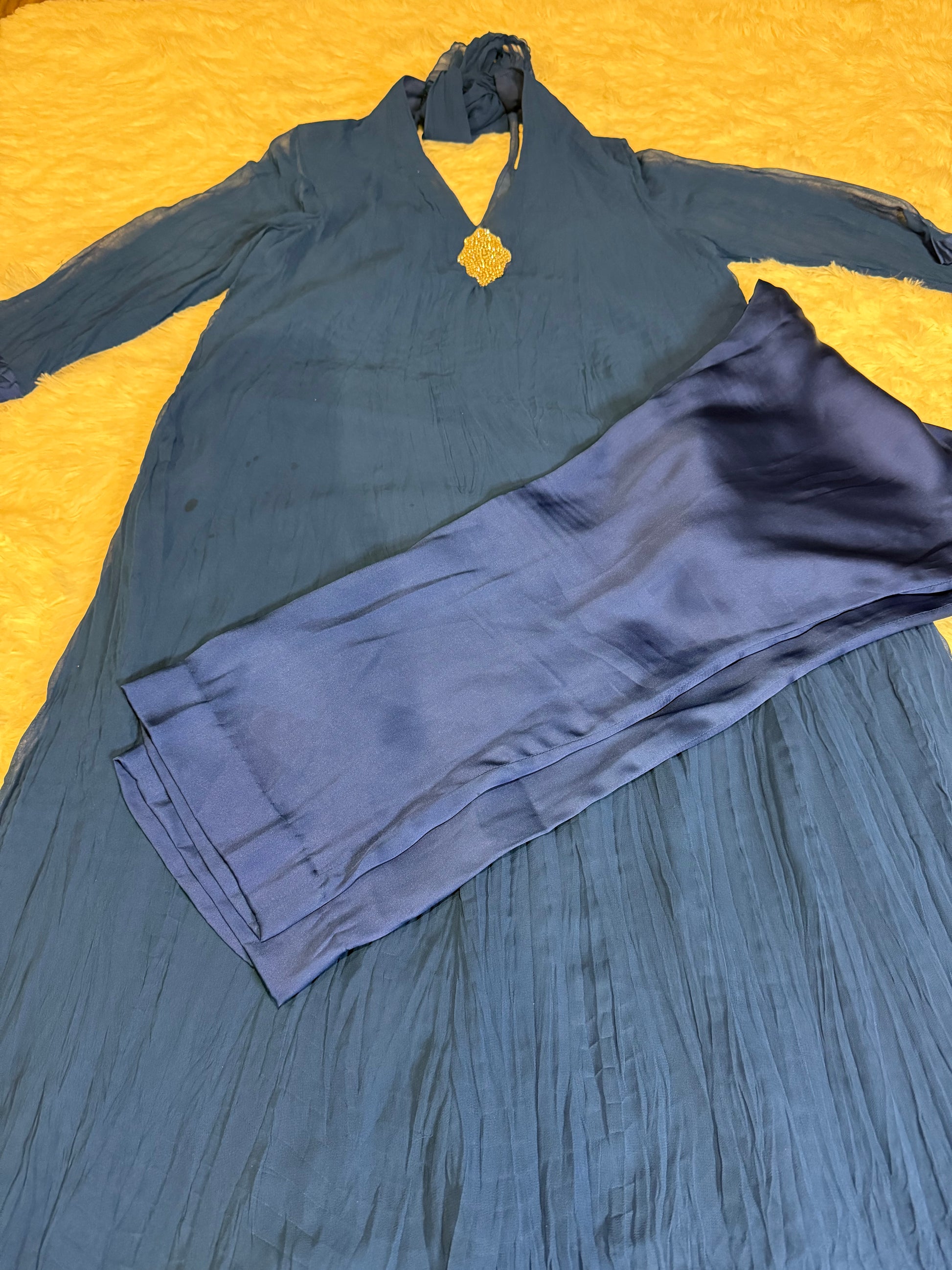 Sublime by Sara Blue Crinkle Chiffon Gown with Pants
