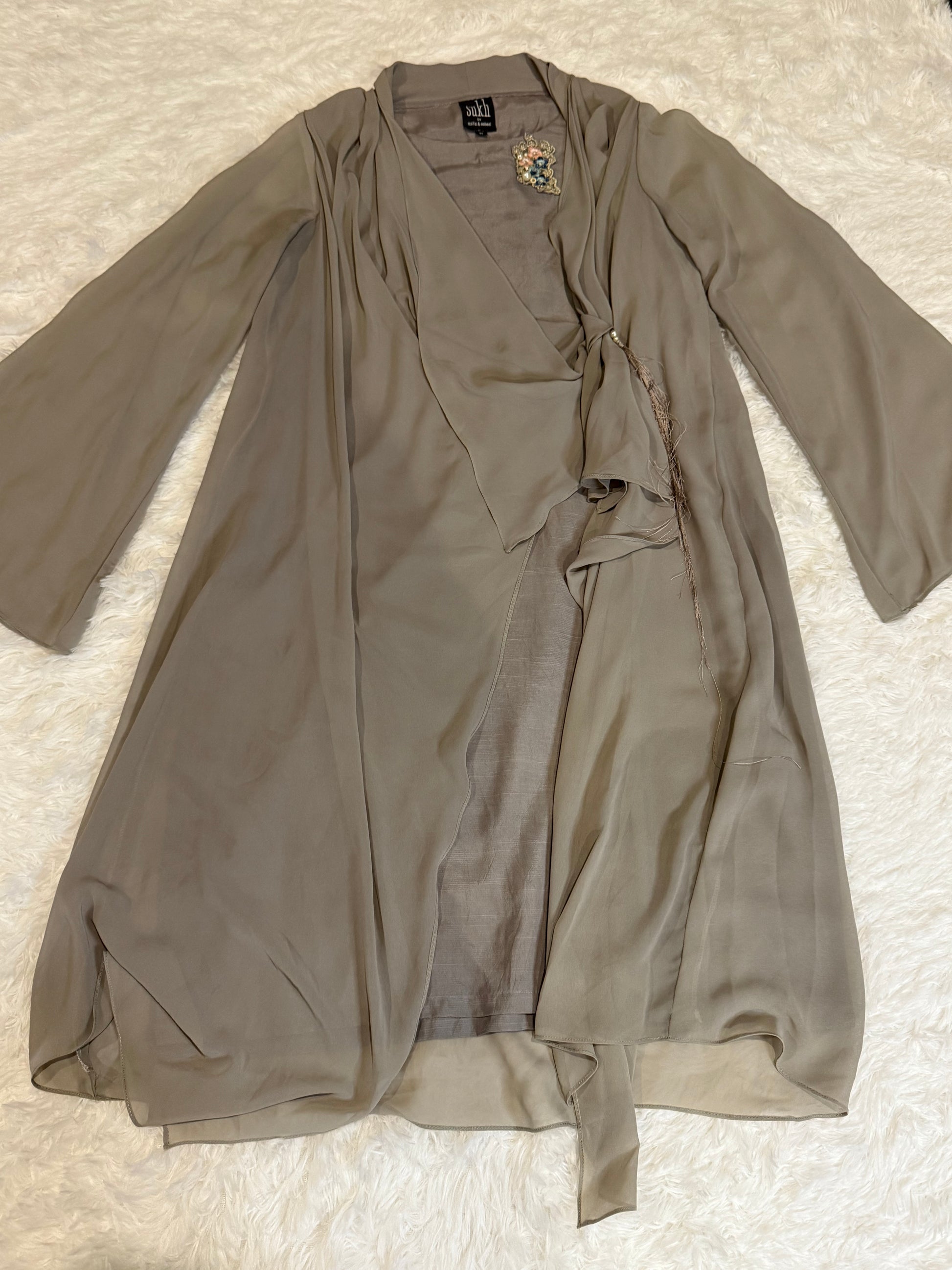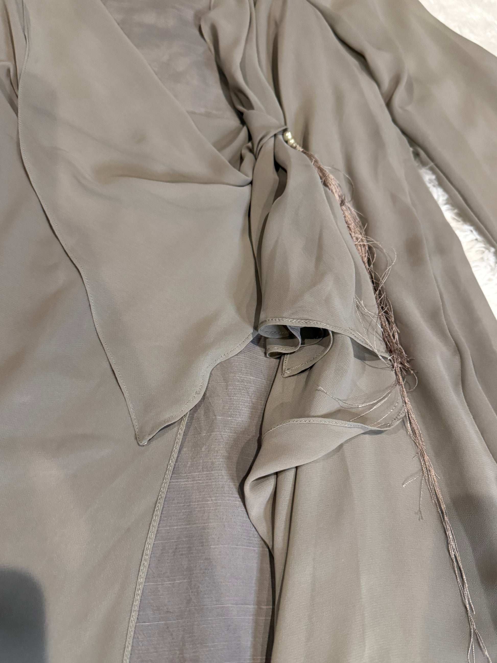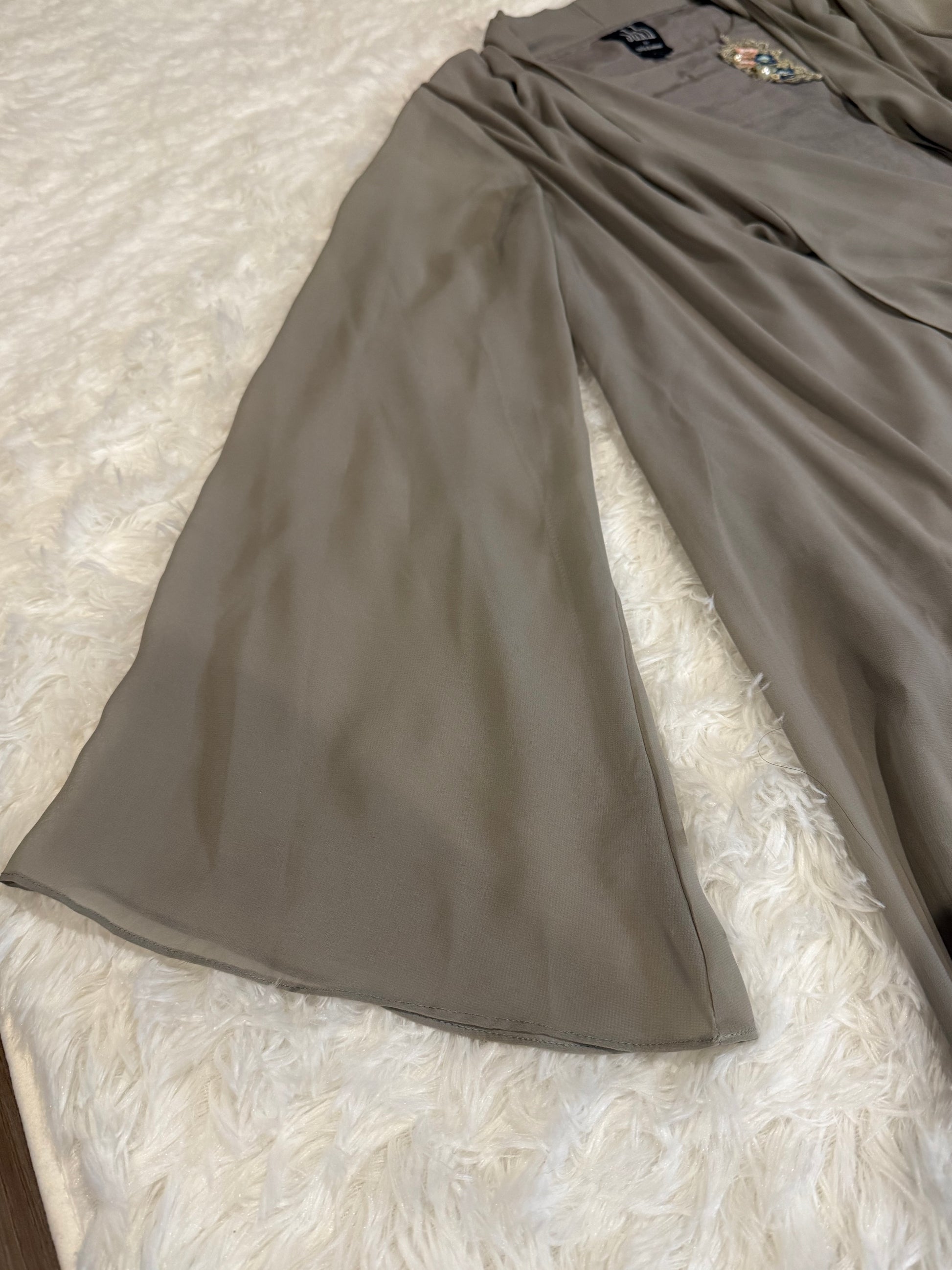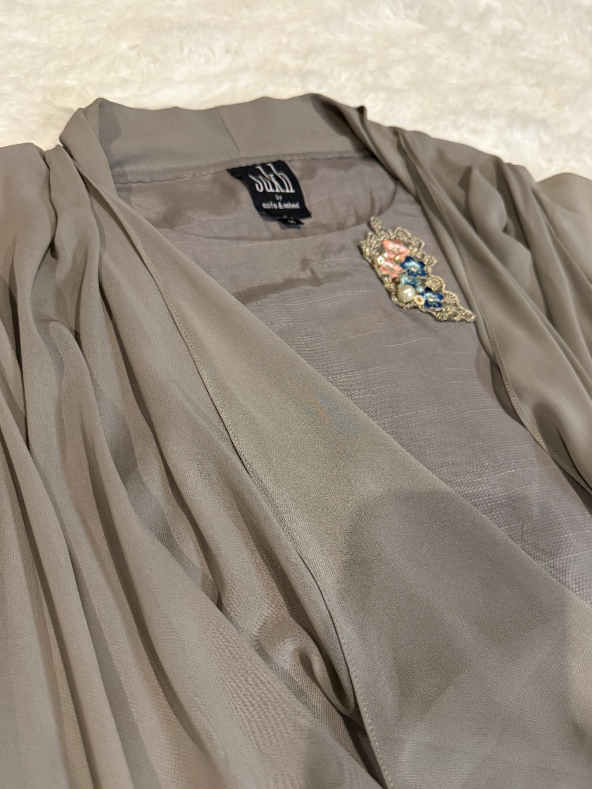 Sukh by Asifa & Nabeel Gray Double Shirt Gown Style with Embellishment near Collar.
