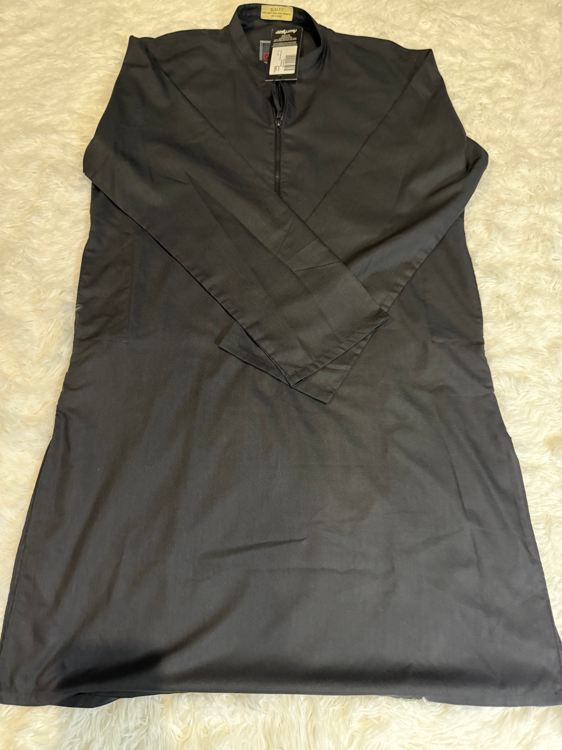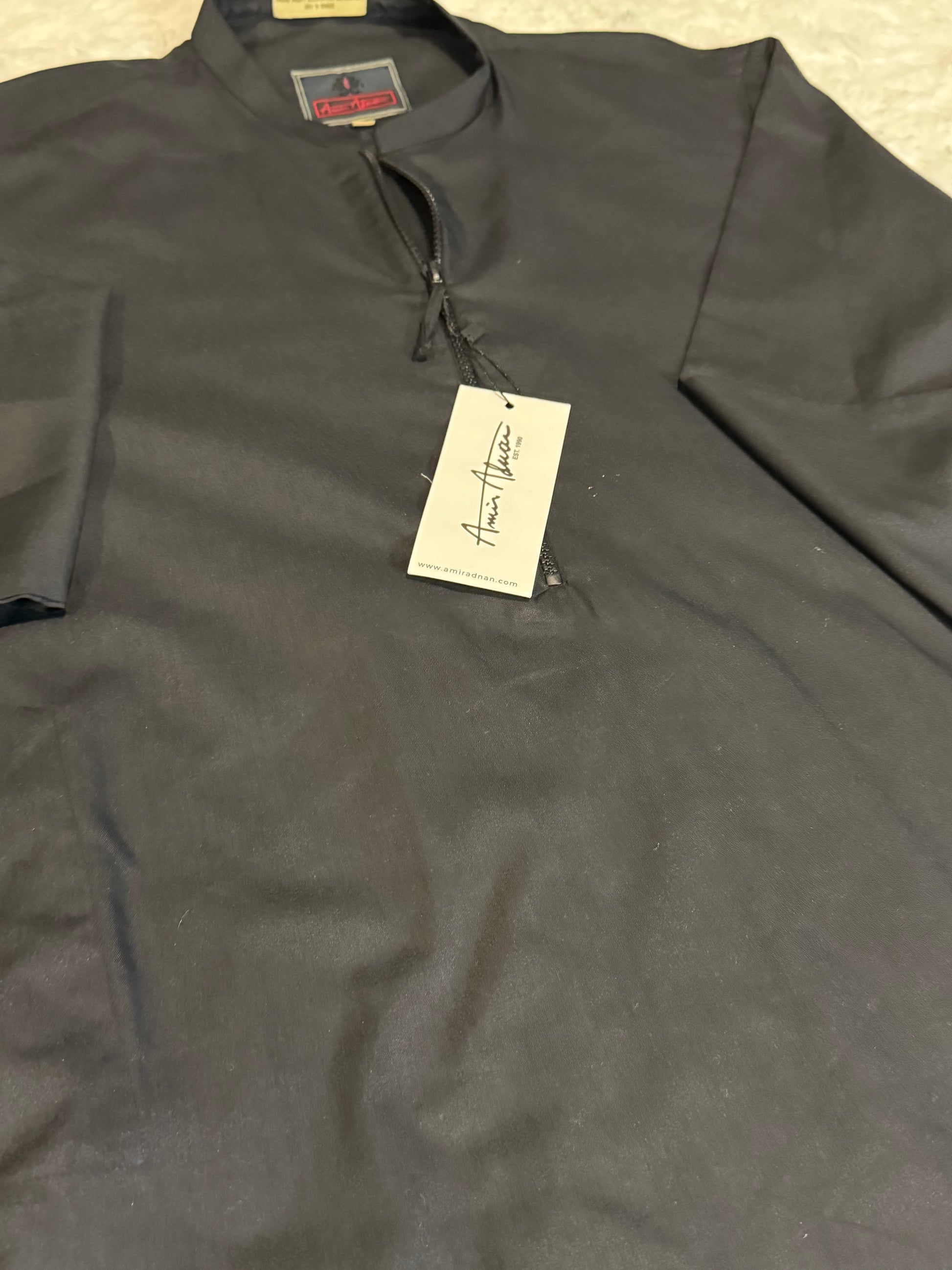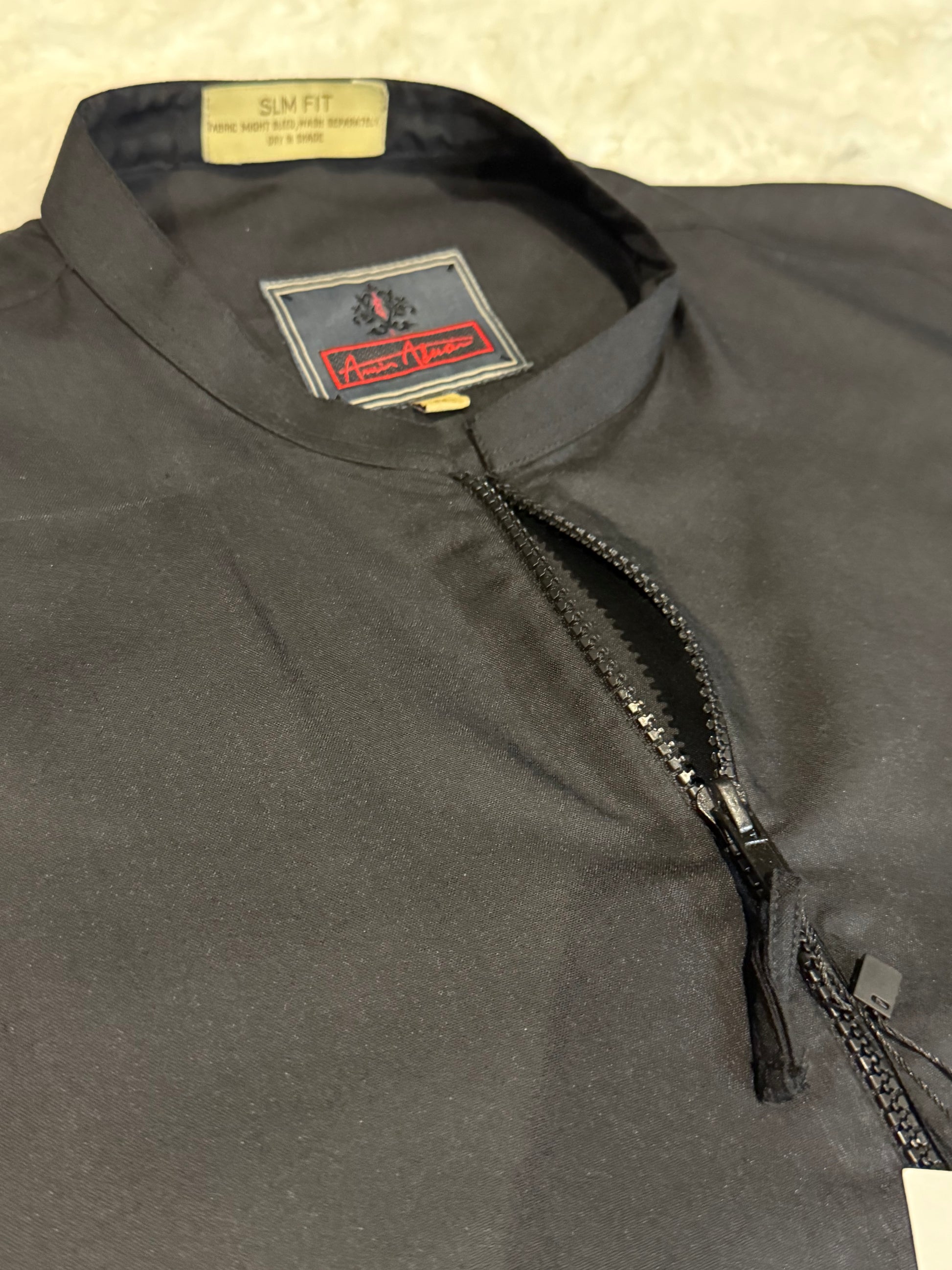 Black Amir Adnan Kurta with Zip Collar in Soft Cotton Material.