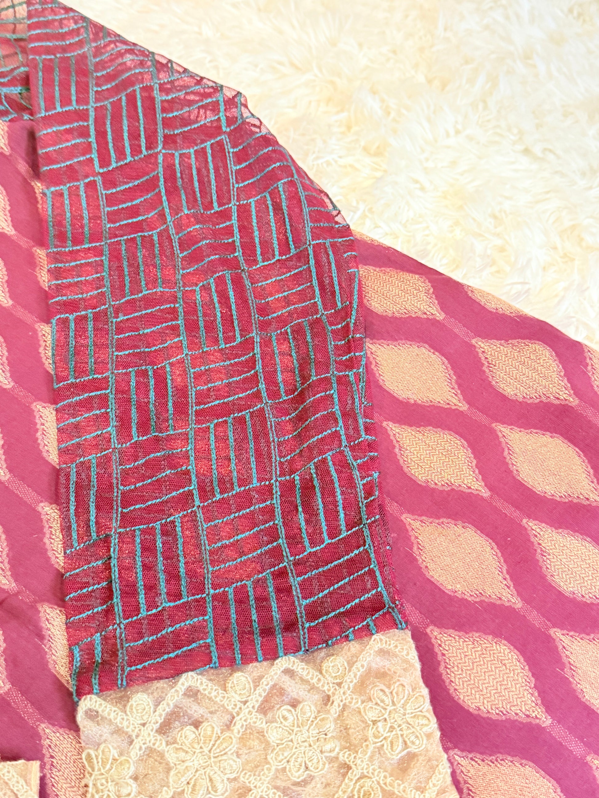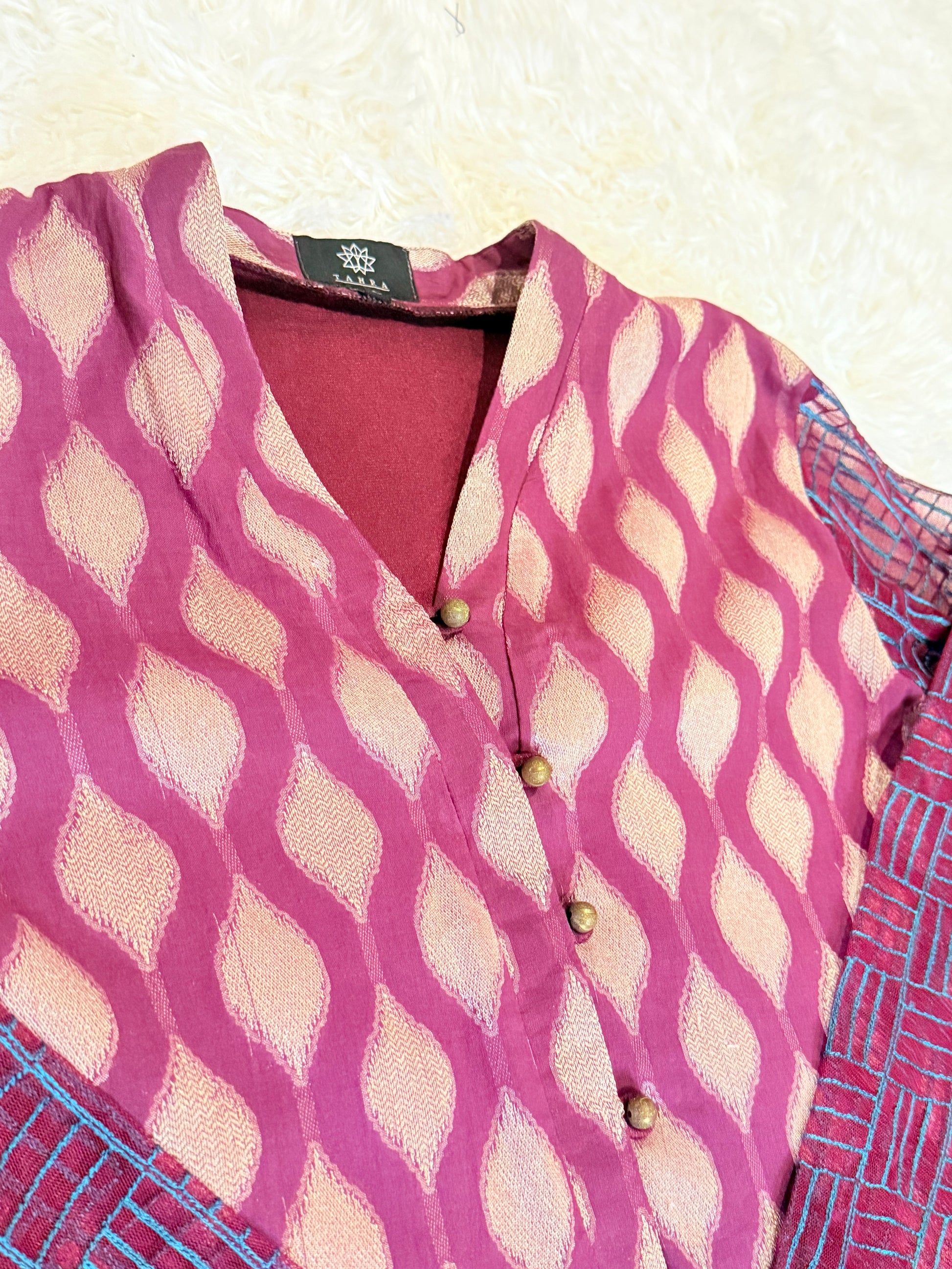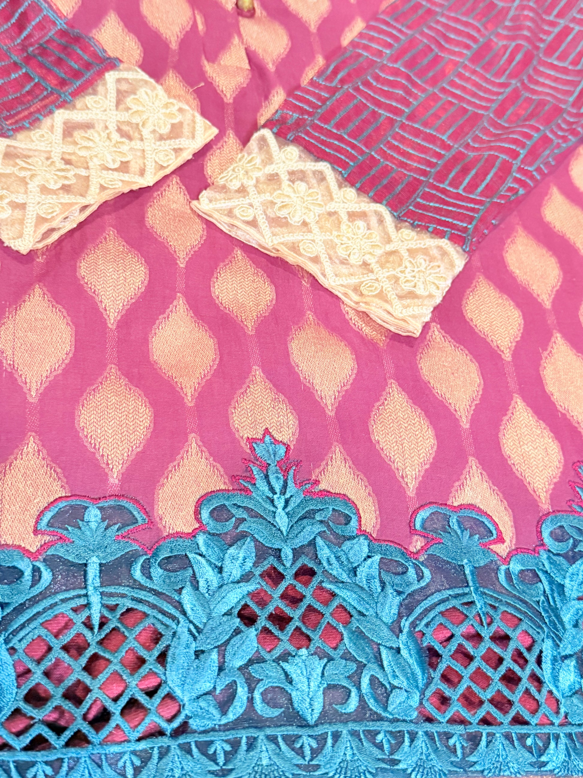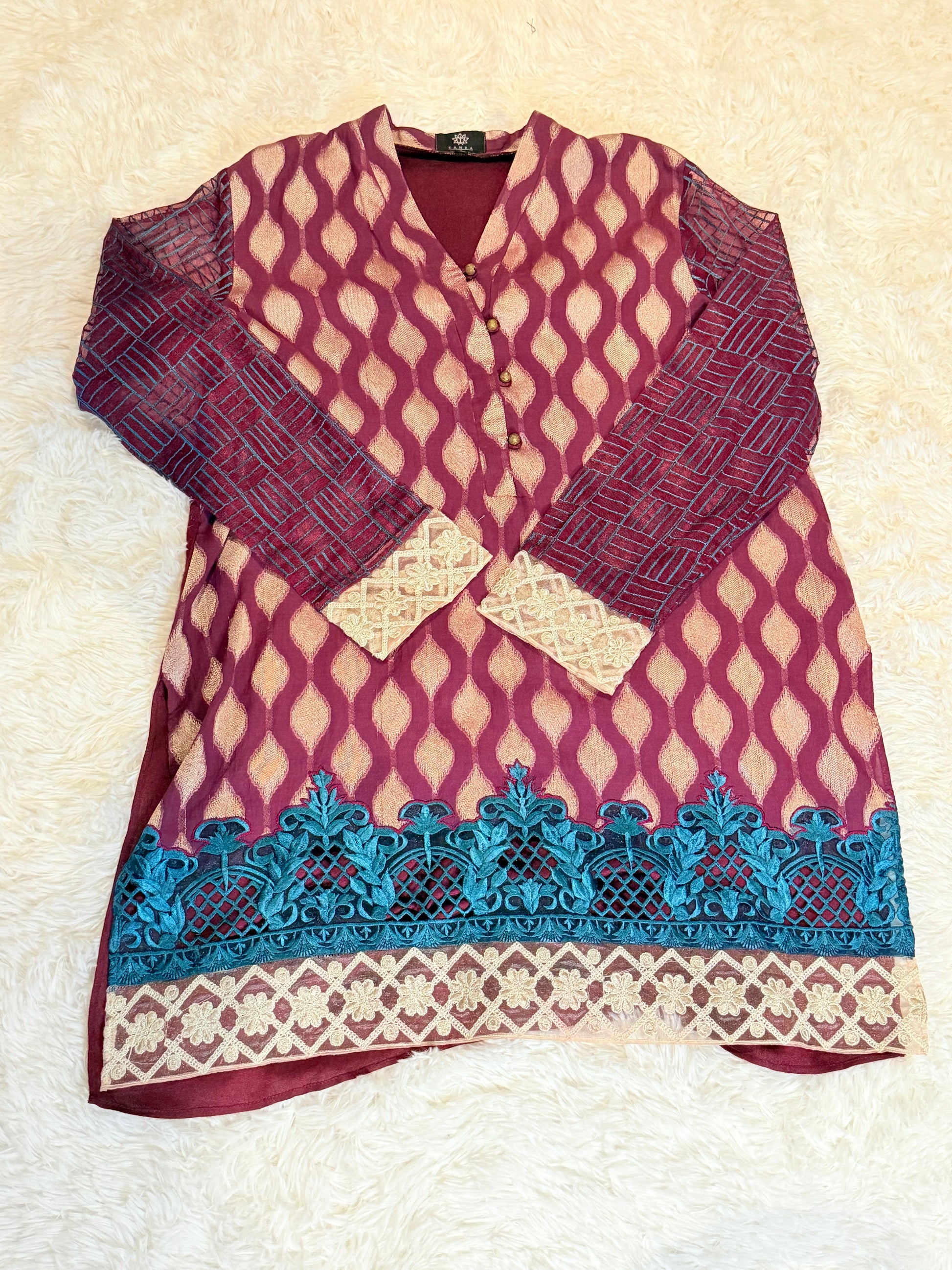 Zainab Chottani - Tahra collection Purple Shirt with Cream and Teal Embroidery